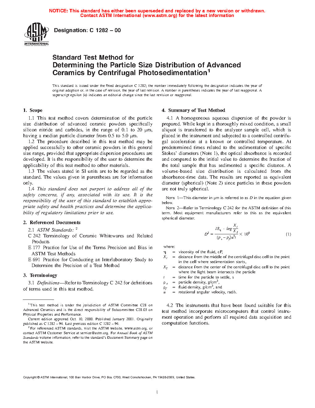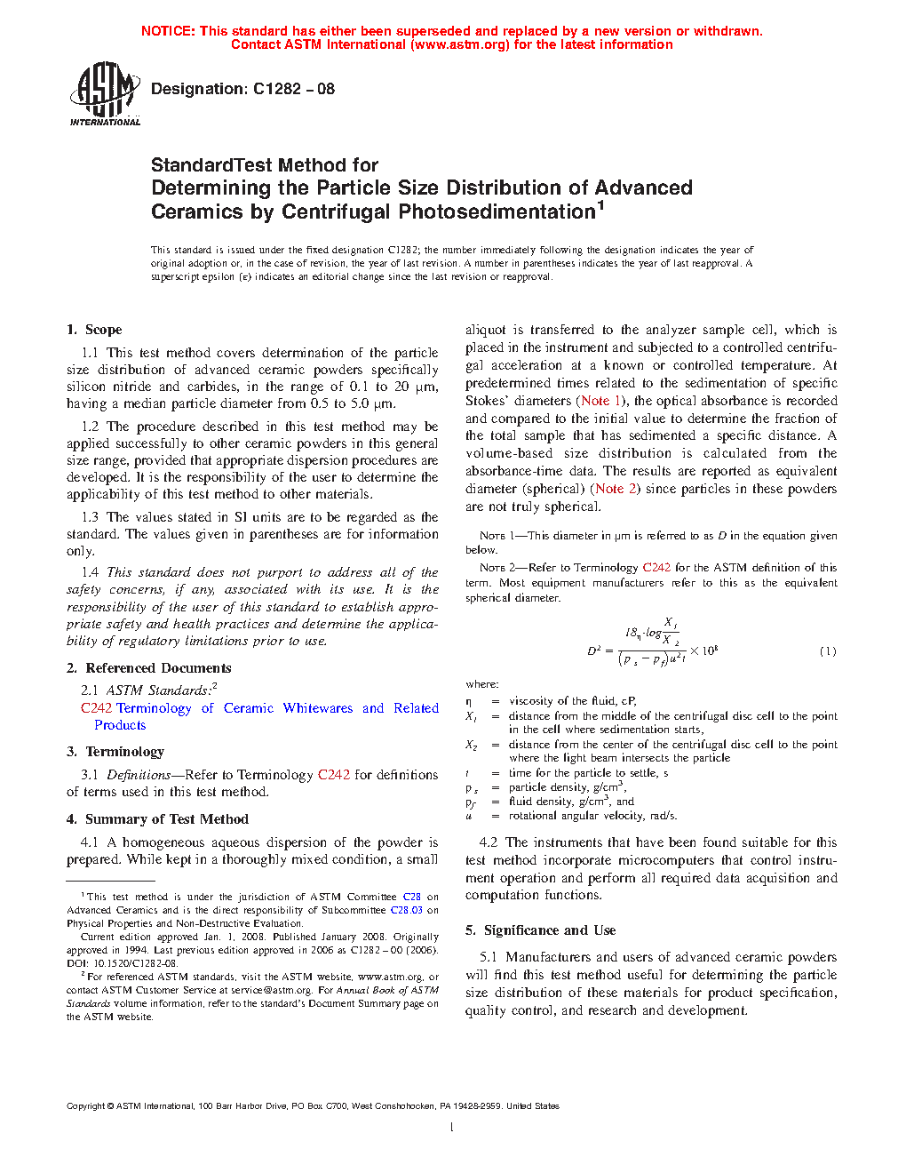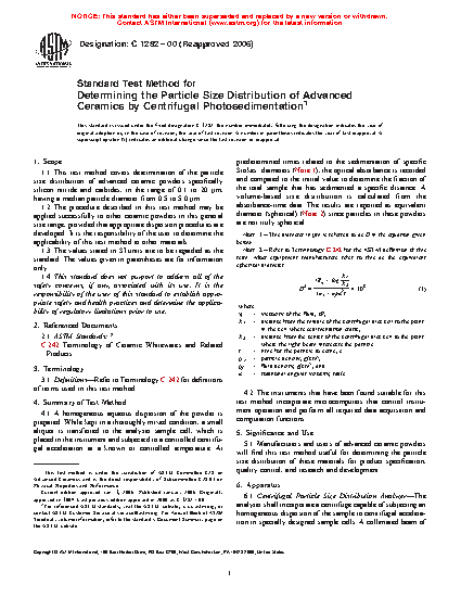 1.2 The procedure described in this test method may be applied successfully to other ceramic powders in this general size range, provided that appropriate dispersion procedures are developed. It is the responsibility of the user to determine the applicability of this test method to other materials.