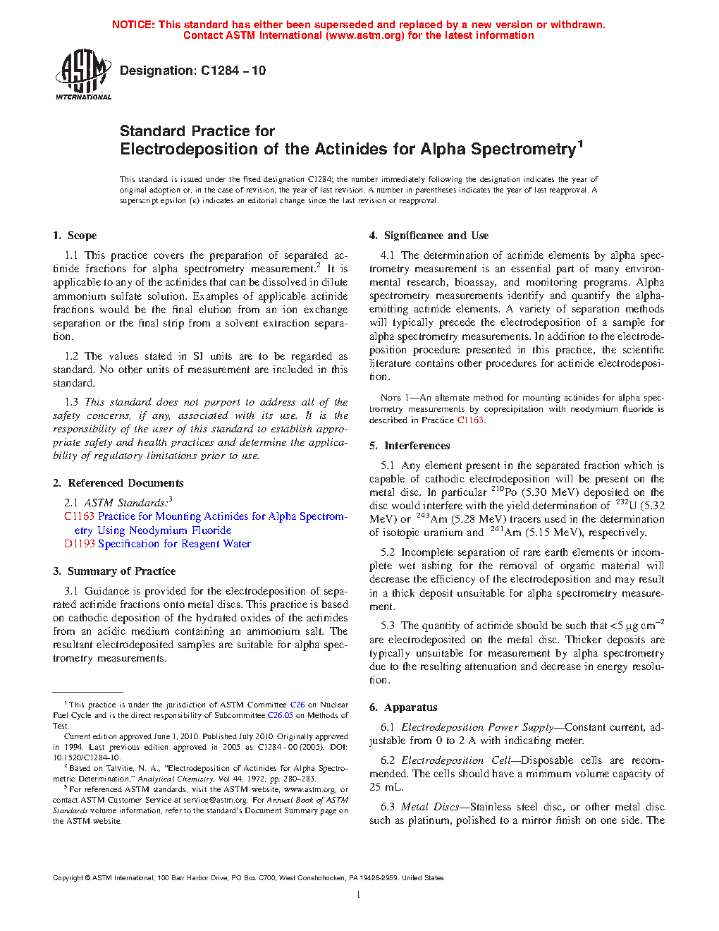 Note 1: An alternate method for mounting actinides for alpha spectrometry measurements by coprecipitation with neodymium fluoride is described in Practice C1163.