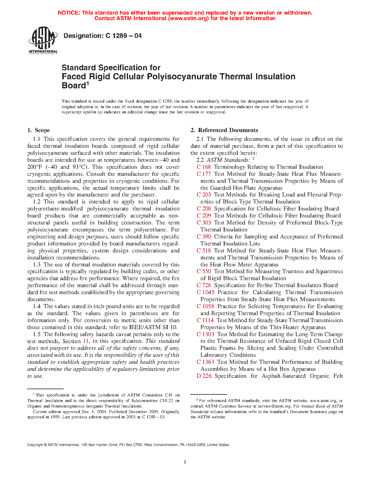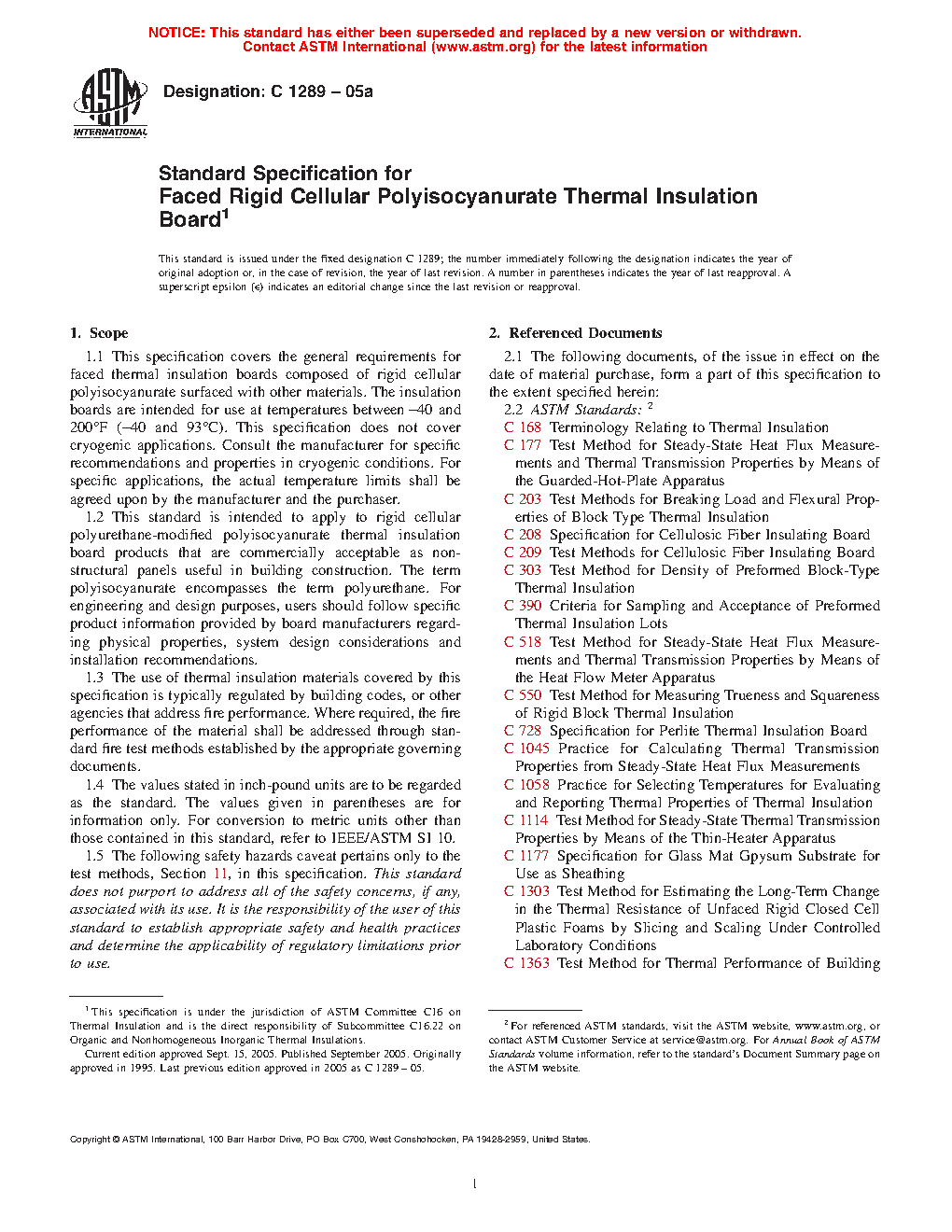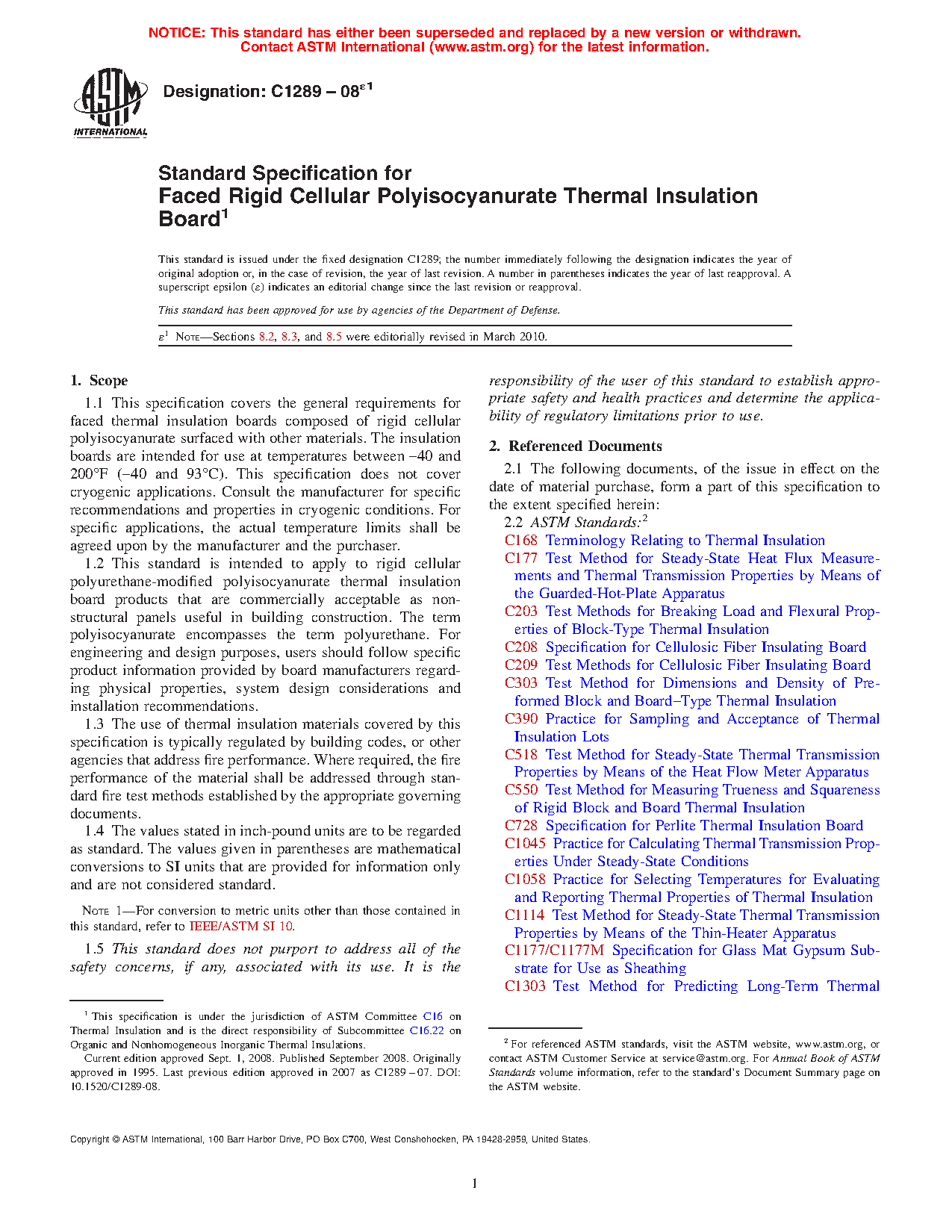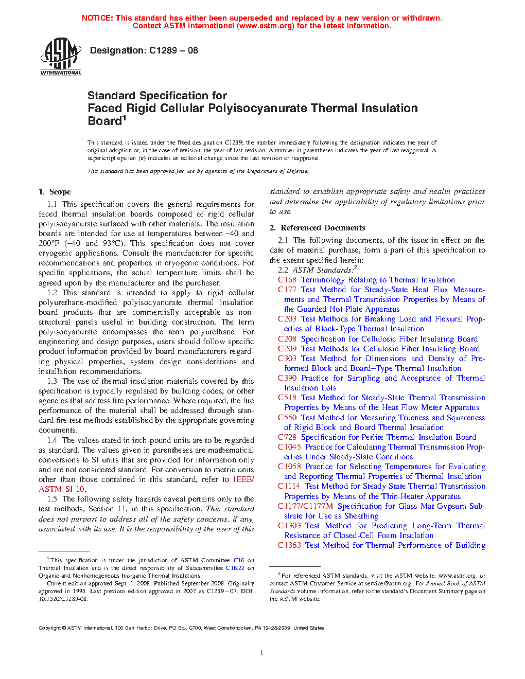 1.2 This standard is intended to apply to rigid cellular polyurethane-modified polyisocyanurate thermal insulation board products that are commercially acceptable as non-structural panels useful in building construction. The term polyisocyanurate encompasses the term polyurethane. For engineering and design purposes, users should follow specific product information provided by board manufacturers regarding physical properties, system design considerations and installation recommendations.