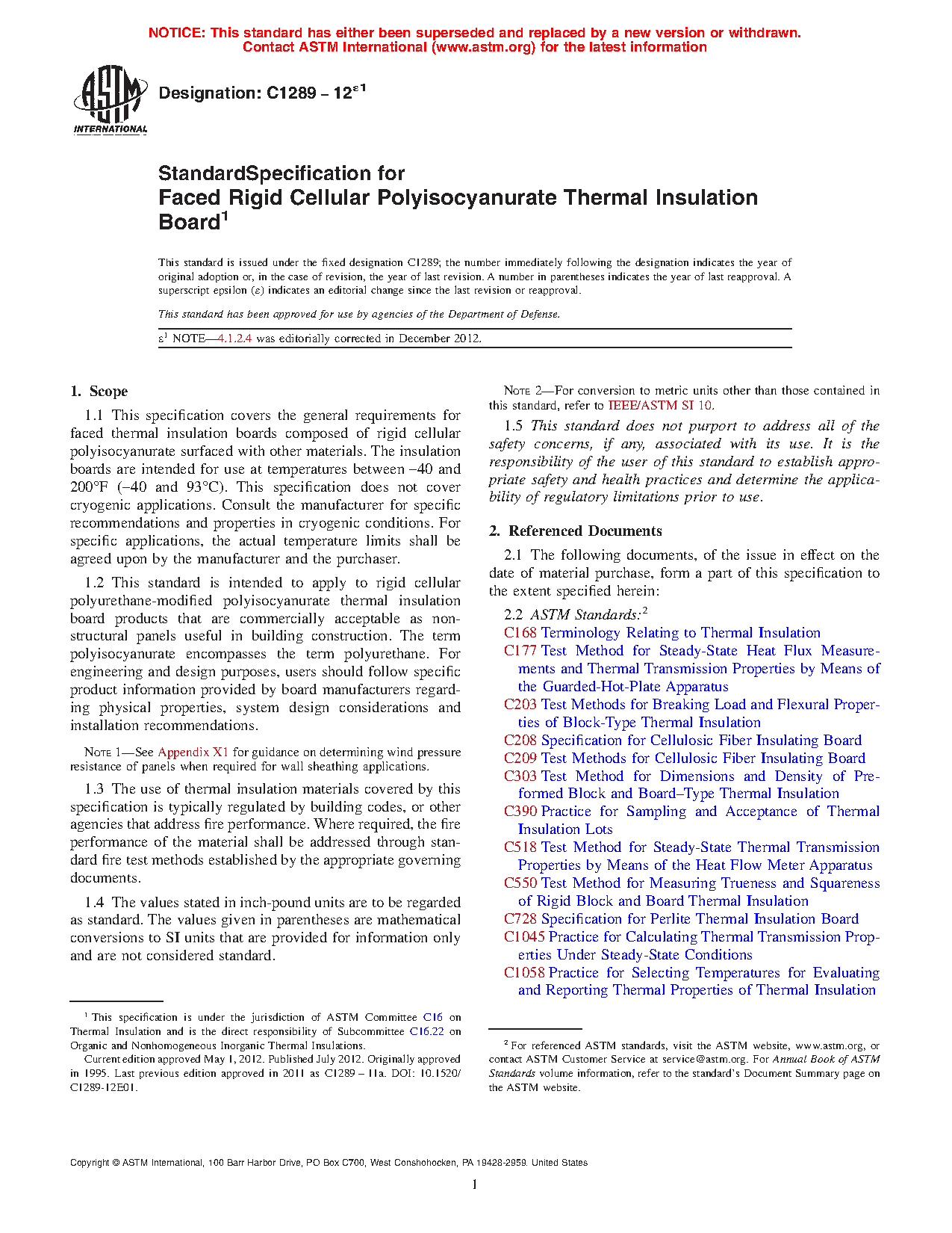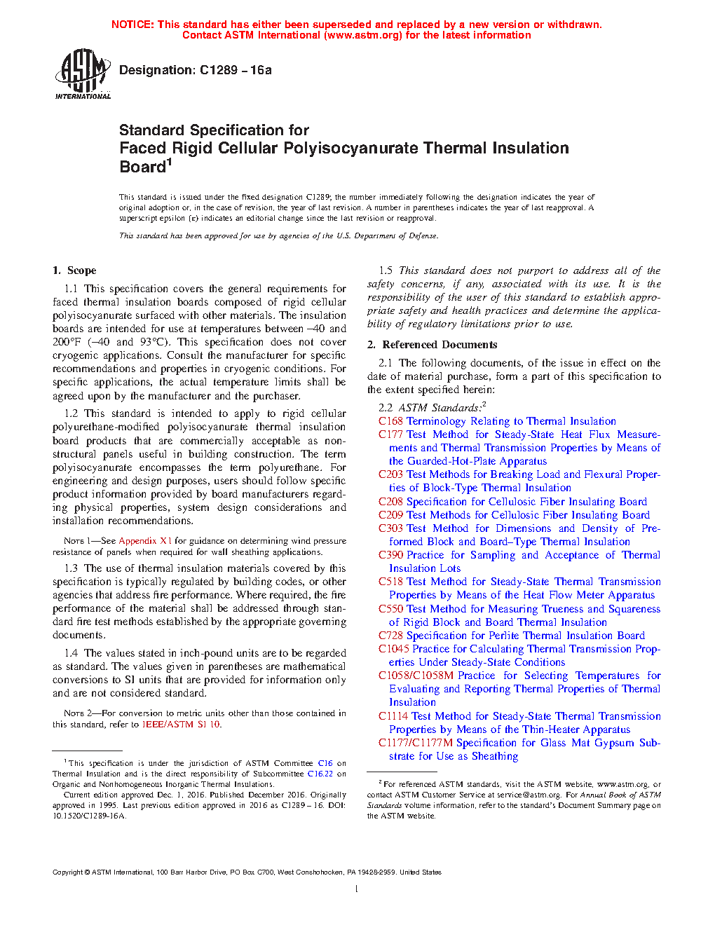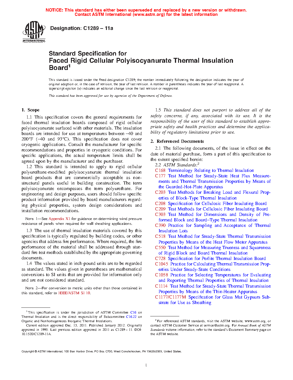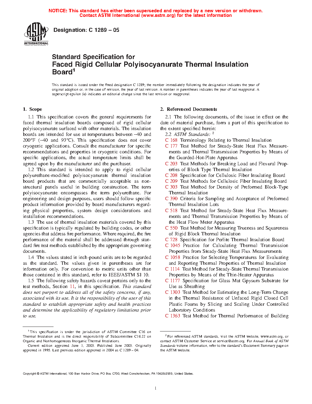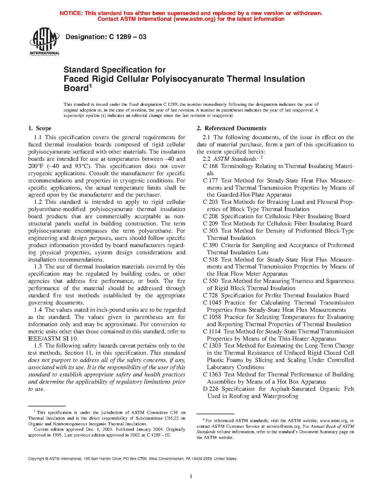 1.2 This standard is intended to apply to rigid cellular polyurethane-modified polyisocyanurate thermal insulation board products that are commercially acceptable as non-structural panels useful in building construction. The term polyisocyanurate encompasses the term polyurethane. For engineering and design purposes, users should follow specific product information provided by board manufacturers regarding physical properties, system design considerations and installation recommendations.