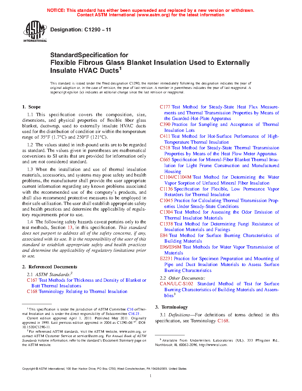 1.3 When the installation and use of thermal insulation materials, accessories, and systems may pose safety and health problems, the manufacturer shall provide the user appropriate current information regarding any known problems associated with the recommended use of the company's products, and shall also recommend protective measures to be employed in their safe utilization. The user shall establish appropriate safety and health practices and determine the applicability of regulatory requirements prior to use.