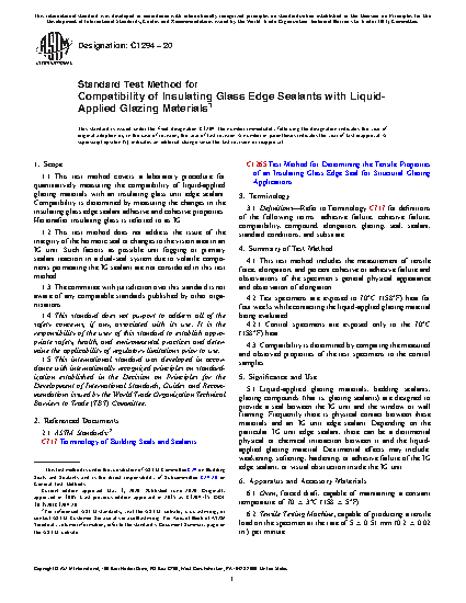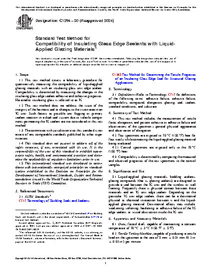 1.1 This test method covers a laboratory procedure for quantitatively measuring the compatibility of liquid-applied glazing materials with an insulating glass unit edge sealant. Compatibility is determined by measuring the changes in the insulating glass edge sealant adhesive and cohesive properties. Hereinafter insulating glass is referred to as IG.