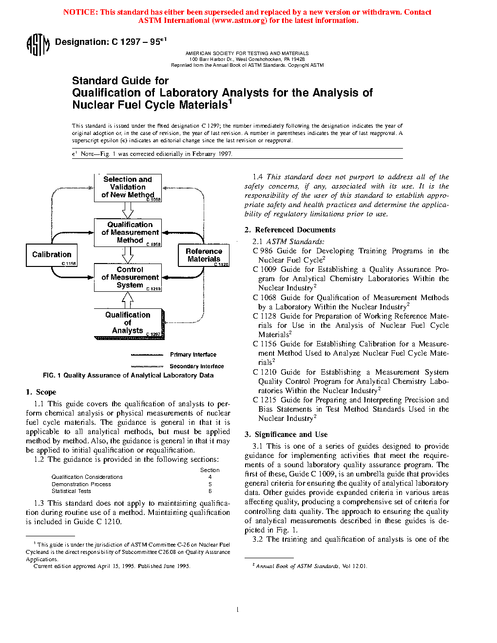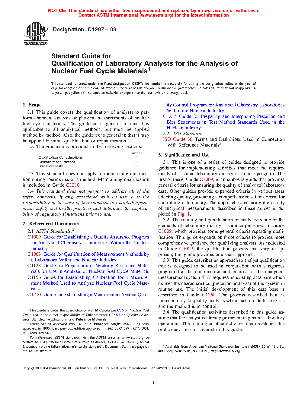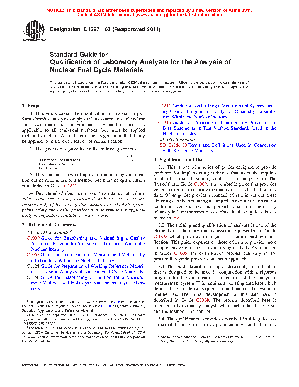 1.3 This standard does not apply to maintaining qualification during routine use of a method. Maintaining qualification is included in Guide C1210.