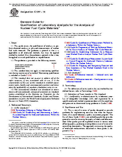 1.1 This guide covers the qualification of analysts to perform chemical analysis or physical measurements of nuclear fuel cycle materials. The guidance is general in that it is applicable to all analytical methods, but must be applied method by method. Also, the guidance is general in that it may be applied to initial qualification or requalification.
