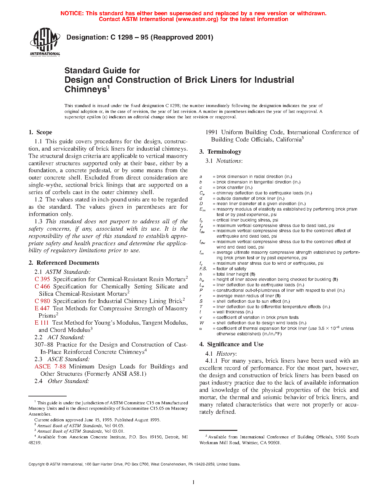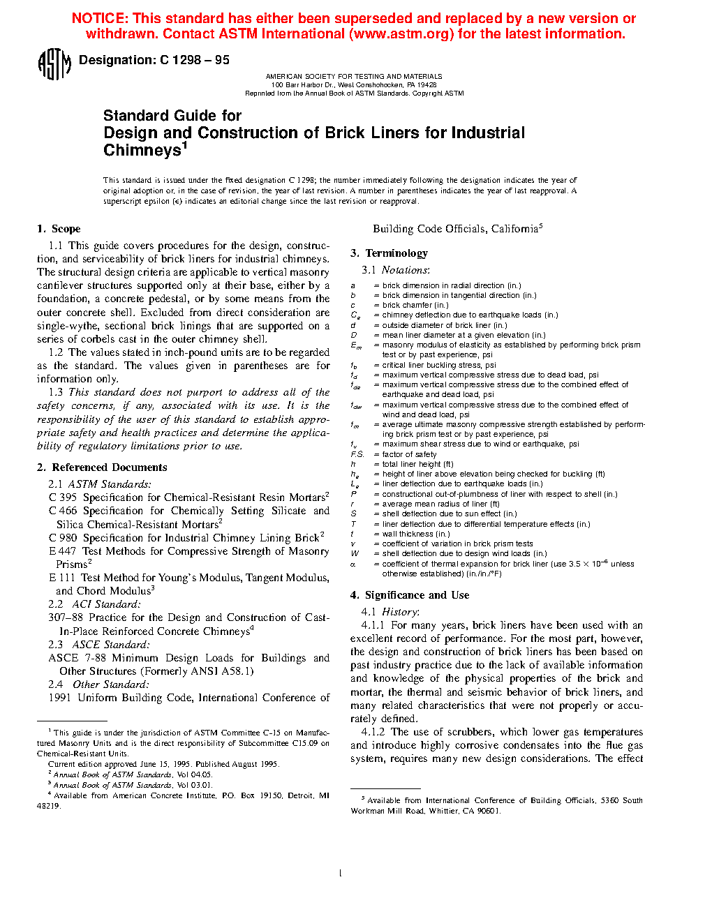 4.2 Purpose—The recommendations contained herein represent current industry practices and serve to define the pertinent considerations that should be followed in the design and construction of brick chimney liners.