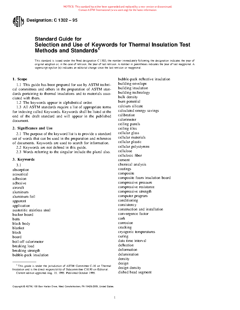 1.3 All ASTM standards require a list of appropriate terms for indexing called Keywords. Keywords shall be listed at the end of the draft standard and will appear in the published document.