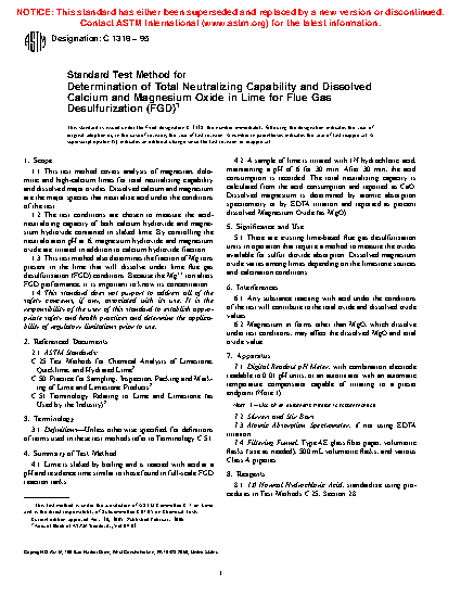 1.3 This test method also determines the fraction of Mg ions present in the lime that will dissolve under lime flue gas desulfurization (FGD) conditions. Because the Mg2+ ion alters FGD performance, it is important to know its concentration.