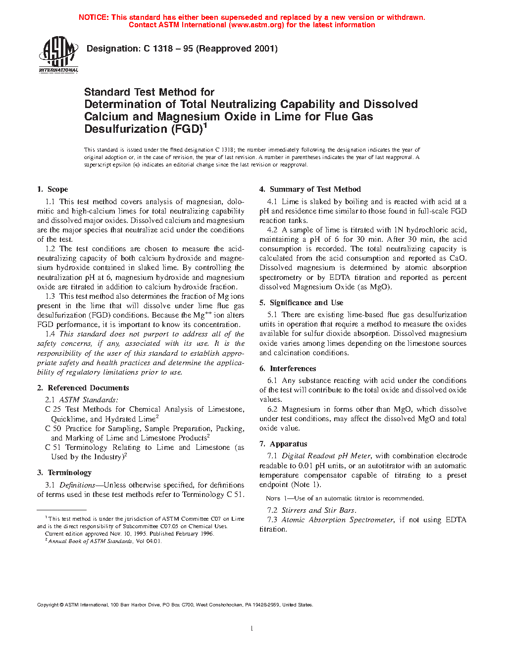 1.2 The test conditions are chosen to measure the acid-neutralizing capacity of both calcium hydroxide and magnesium hydroxide contained in slaked lime. By controlling the neutralization pH at 6, magnesium hydroxide and magnesium oxide are titrated in addition to calcium hydroxide fraction.