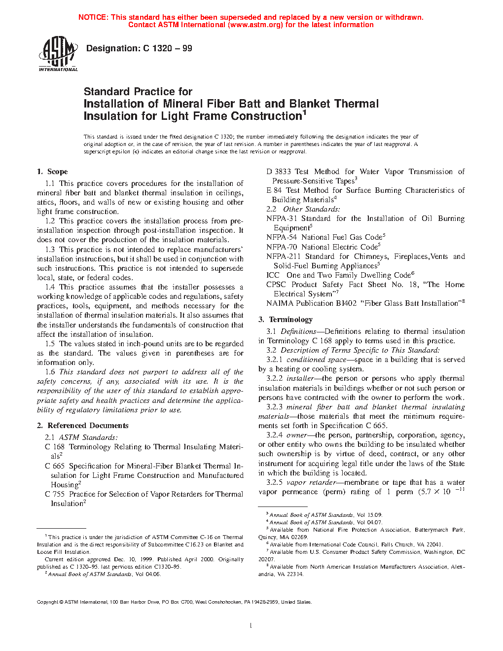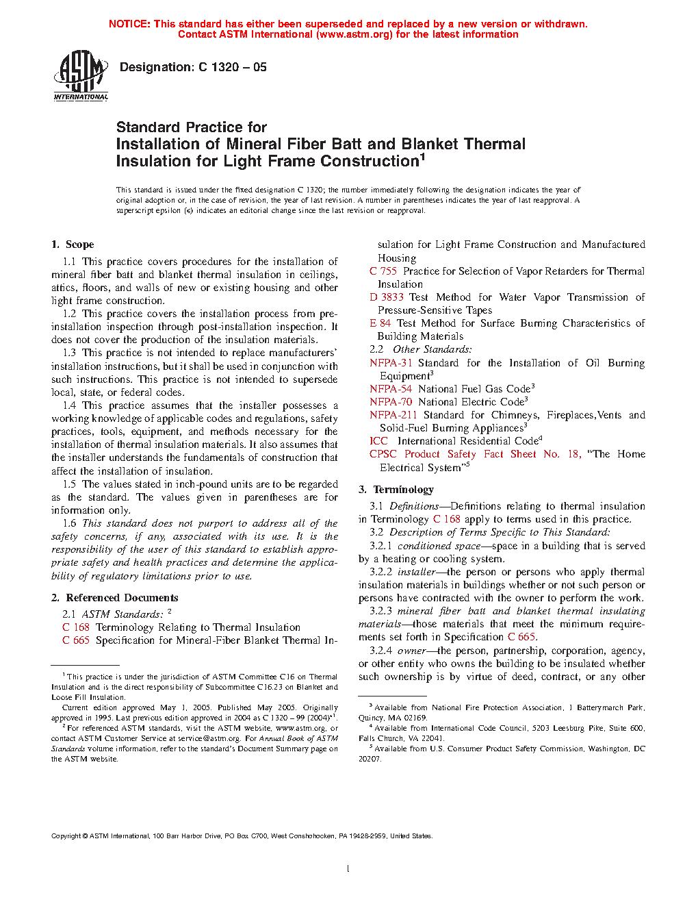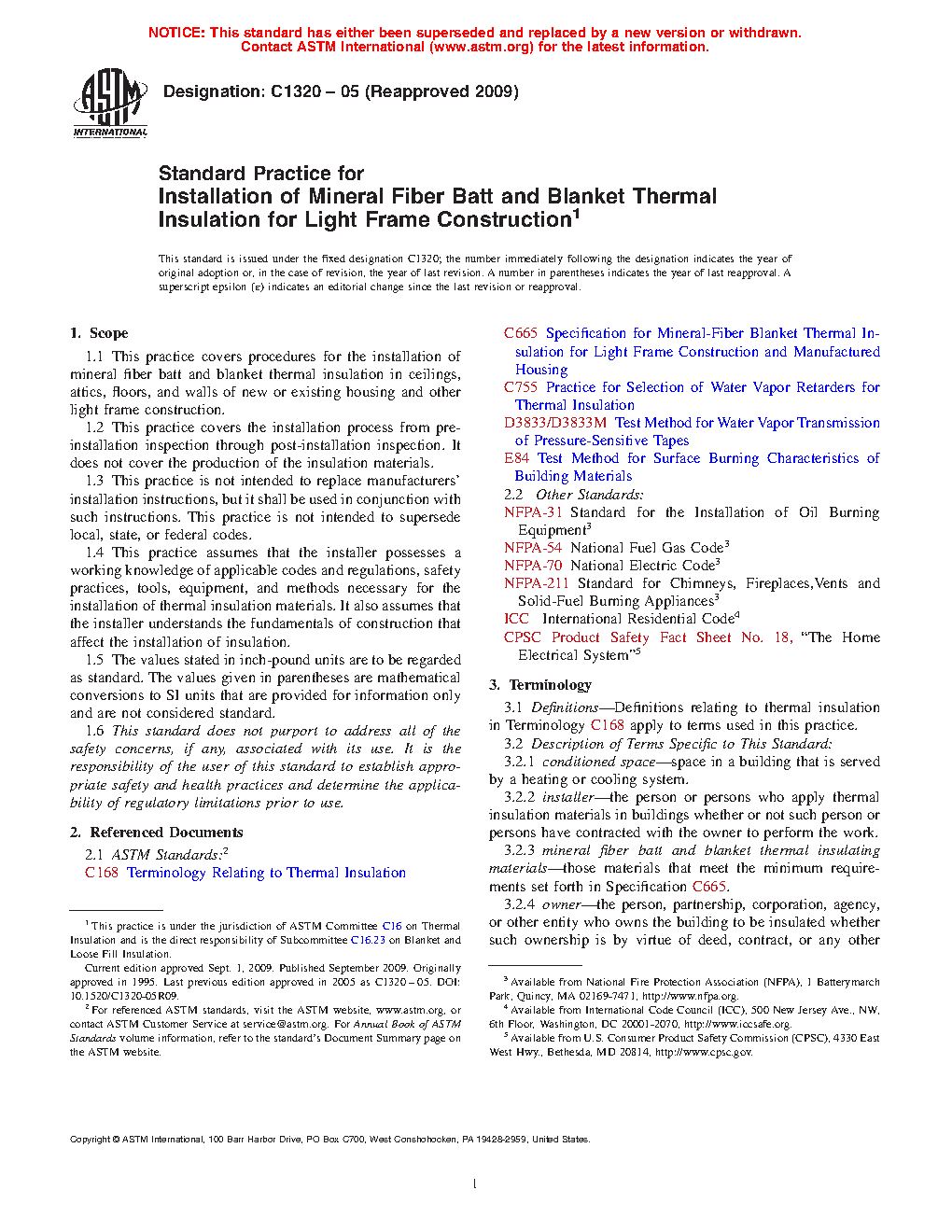 1.4 This practice assumes that the installer possesses a working knowledge of applicable codes and regulations, safety practices, tools, equipment, and methods necessary for the installation of thermal insulation materials. It also assumes that the installer understands the fundamentals of construction that affect the installation of insulation.