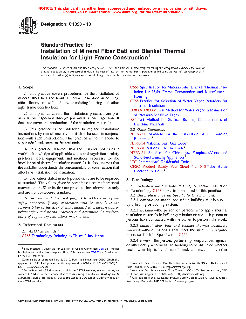 1.2 This practice covers the installation process from pre-installation inspection through post-installation inspection. It does not cover the production of the insulation materials.