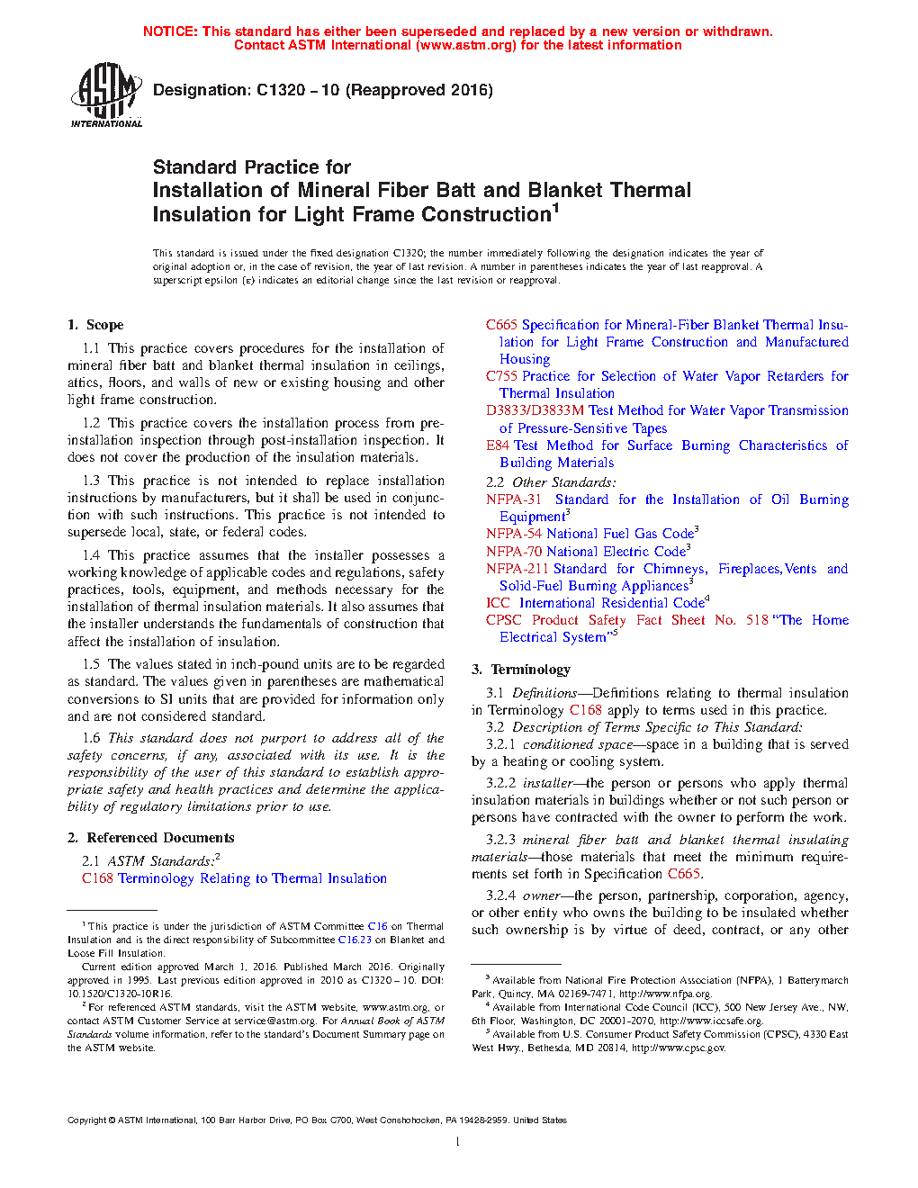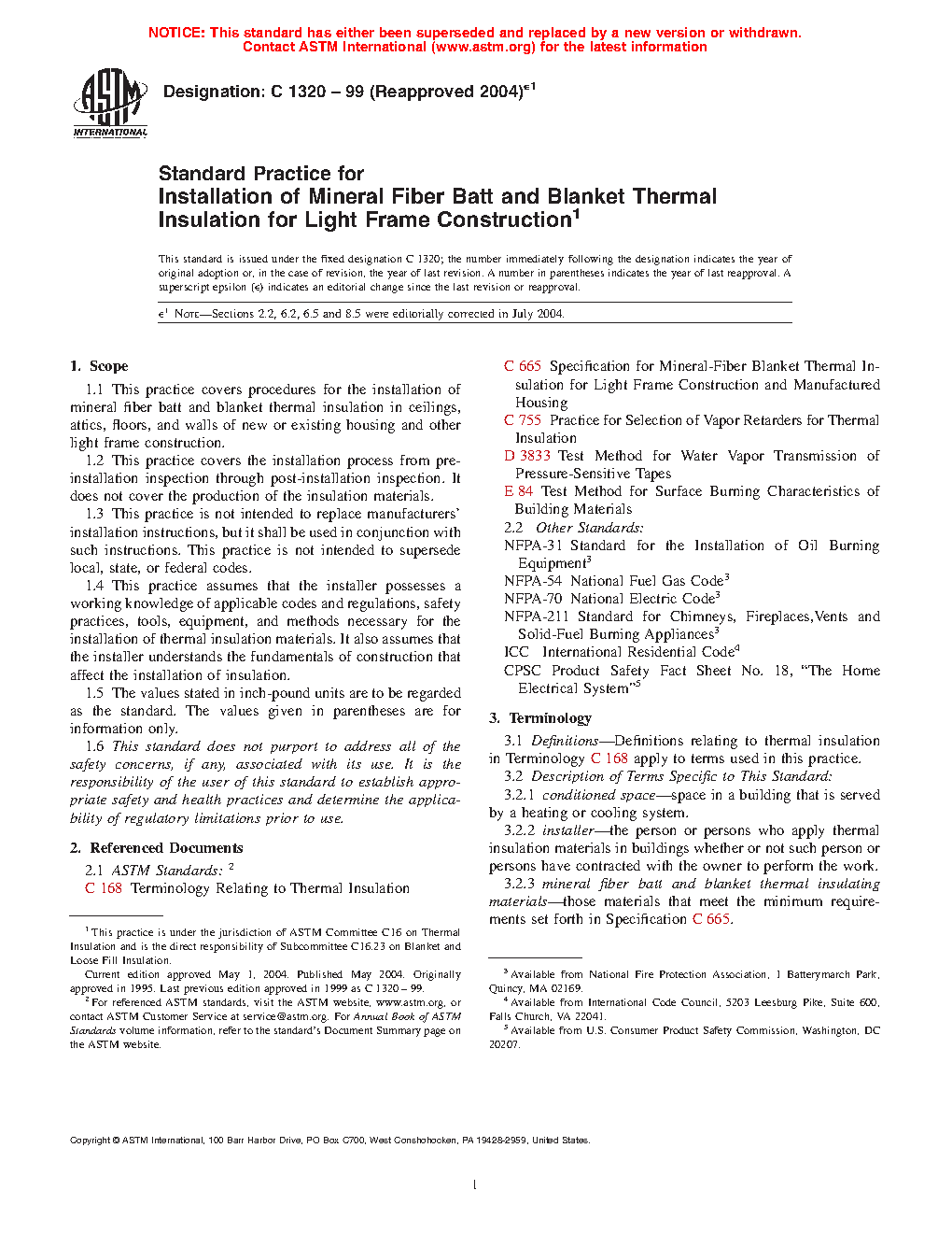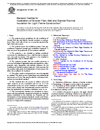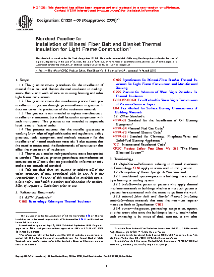 1.4 This practice assumes that the installer possesses a working knowledge of applicable codes and regulations, safety practices, tools, equipment, and methods necessary for the installation of thermal insulation materials. It also assumes that the installer understands the fundamentals of construction that affect the installation of insulation.