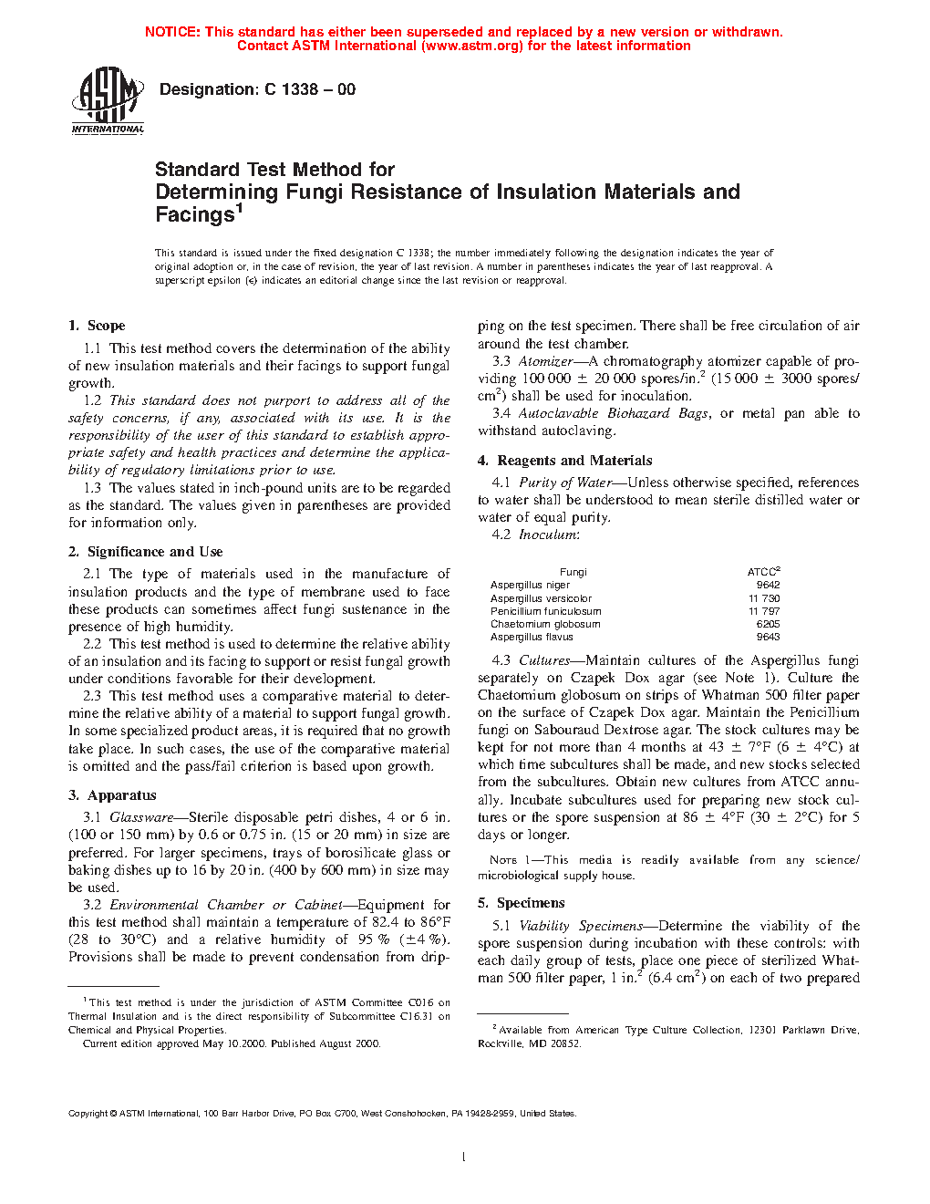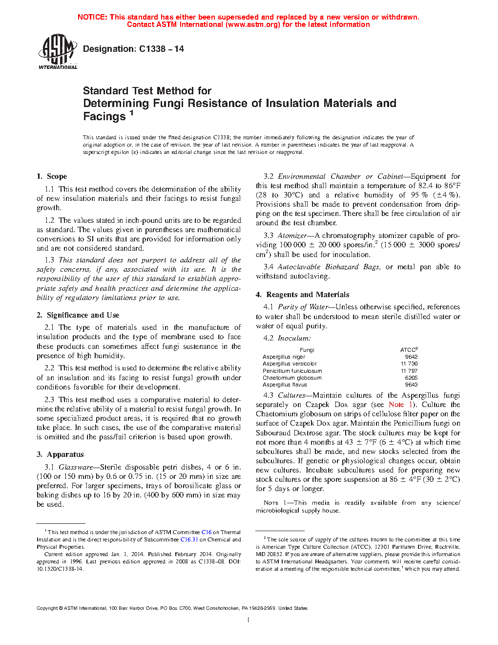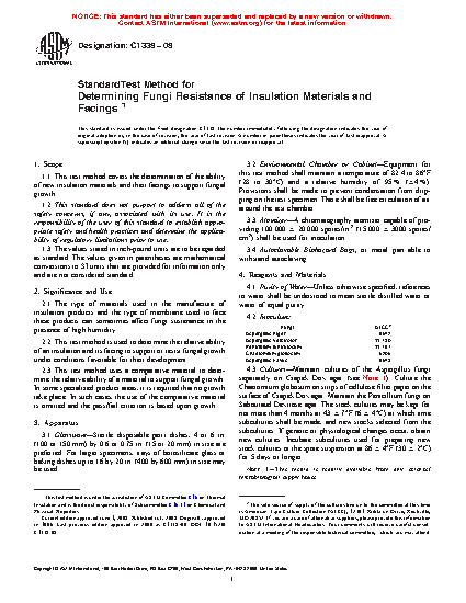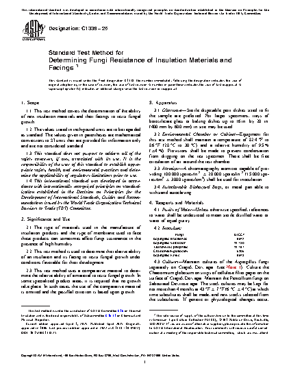 1.1 This test method covers the determination of the ability of new insulation materials and their facings to resist fungal growth.