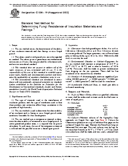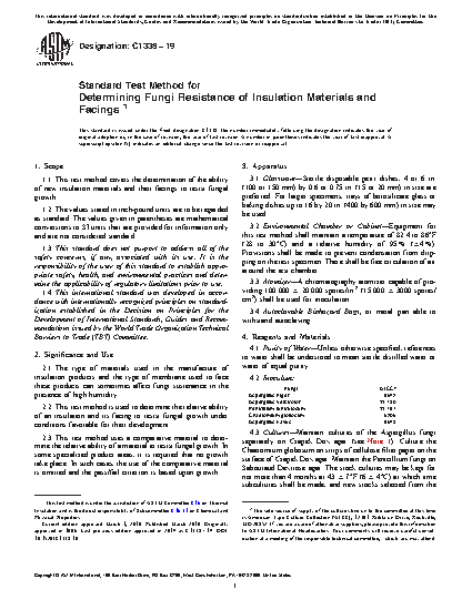 2.2 This test method is used to determine the relative ability of an insulation and its facing to resist fungal growth under conditions favorable for their development.