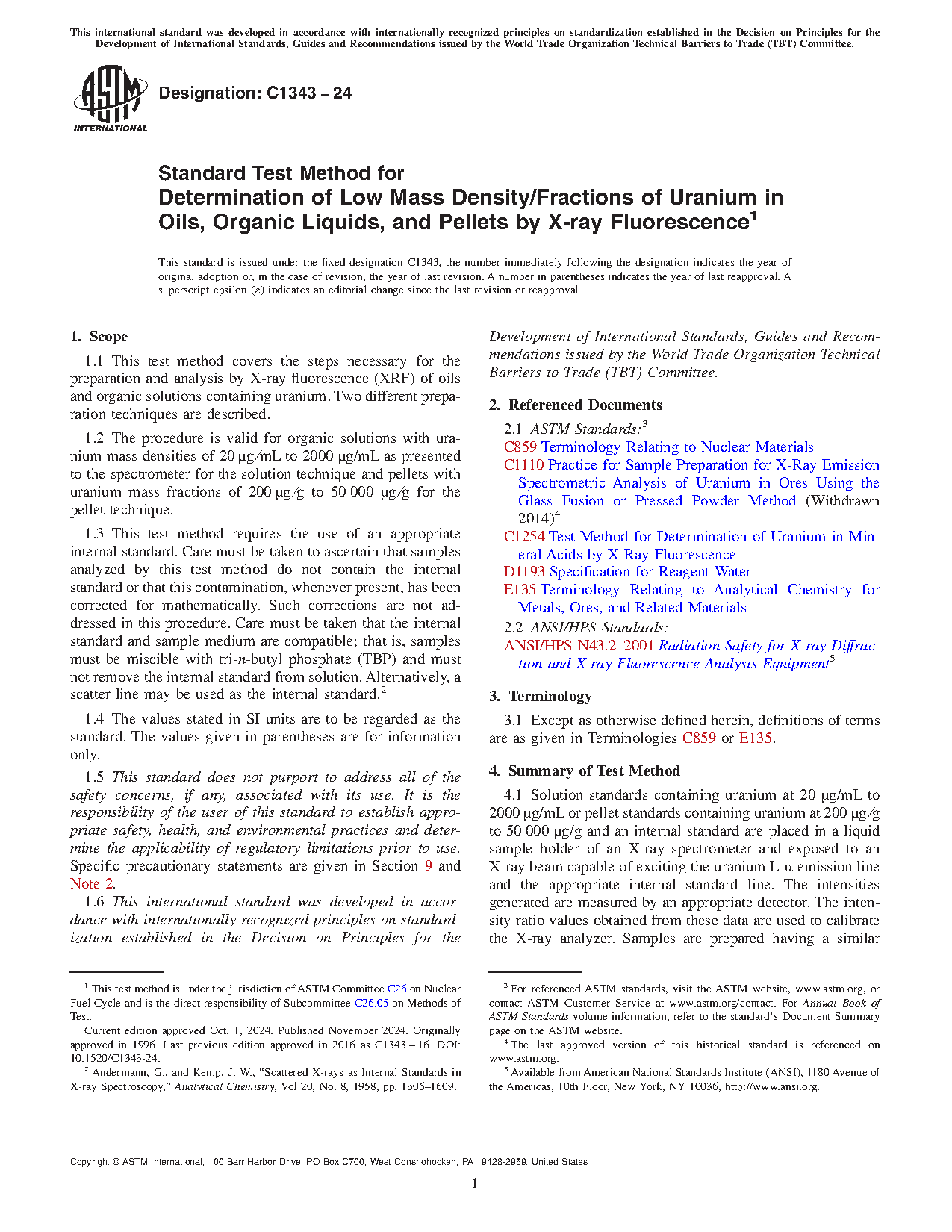 1.2 The procedure is valid for those solutions containing 20 to 2000 μg uranium per mL as presented to the spectrometer for the solution technique and 200 to 50 000 μg uranium per g for the pellet technique.