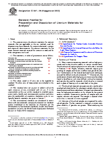 1.1 This practice covers dissolution treatments for uranium materials that are applicable to the test methods used for characterizing these materials for uranium elemental, isotopic, and impurities determinations. Dissolution treatments for the major uranium materials assayed for uranium or analyzed for other components are listed.