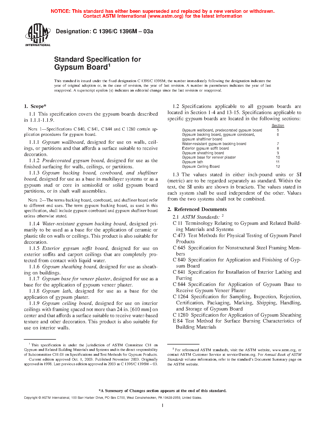 1.1 This specification covers the gypsum boards described in 1.1.1-1.1.9.