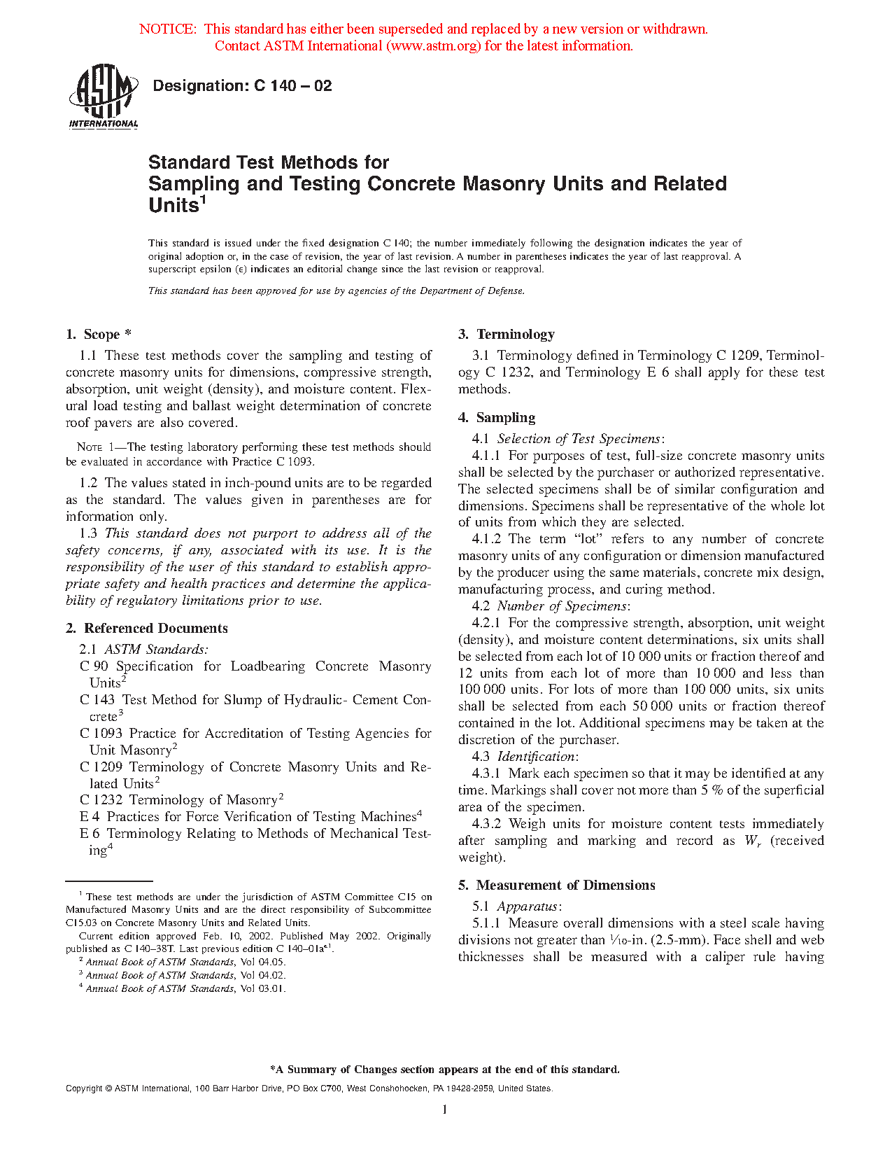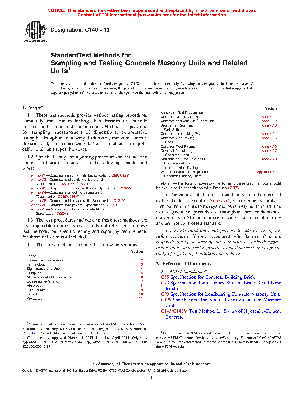 ASTM C140-13