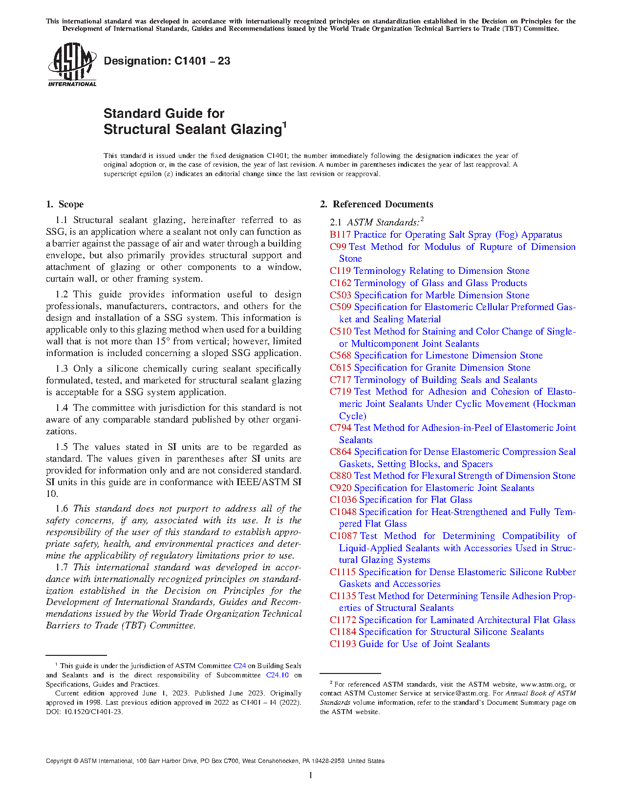 1.1 Structural sealant glazing, hereinafter referred to as SSG, is an application where a sealant not only can function as a barrier against the passage of air and water through a building envelope, but also primarily provides structural support and attachment of glazing or other components to a window, curtain wall, or other framing system.