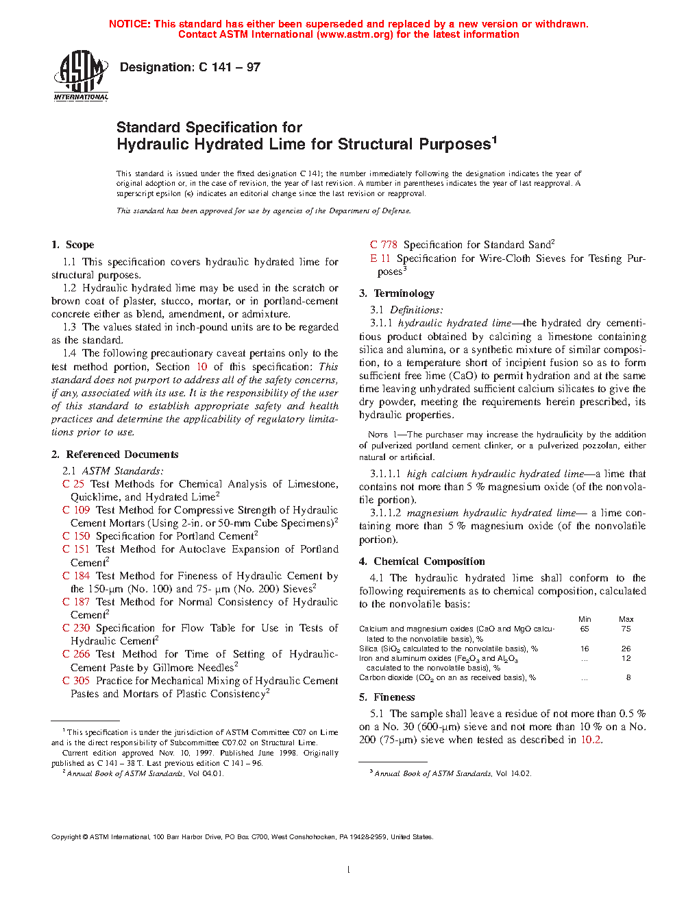 ASTM C141-97