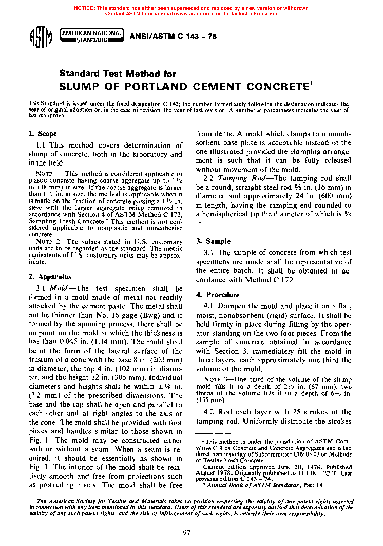 1.1 This test method covers determination of slump of hydraulic-cement concrete, both in the laboratory and in the field.