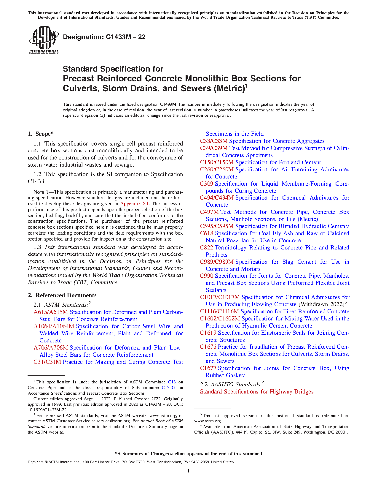 Standard Specification for Precast Reinforced Concrete Monolithic Box Sections for Culverts, Storm Drains, and Sewers (Metric)