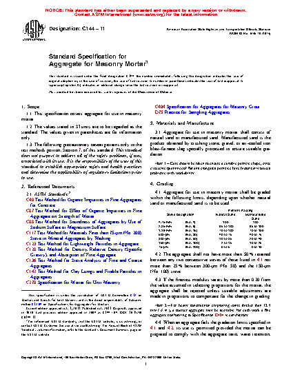 1.1 This specification covers aggregate for use in masonry mortar.