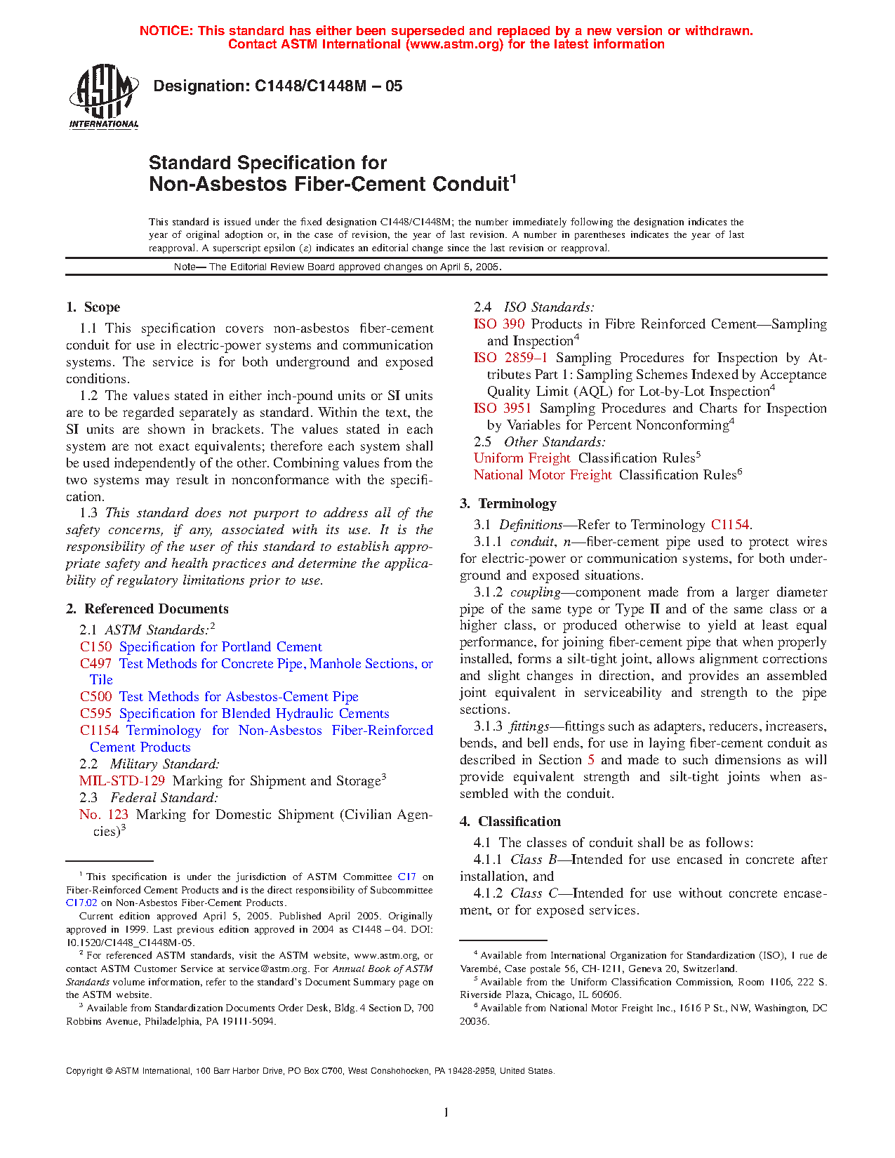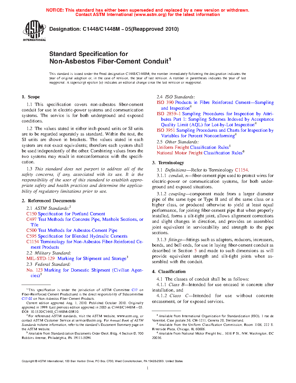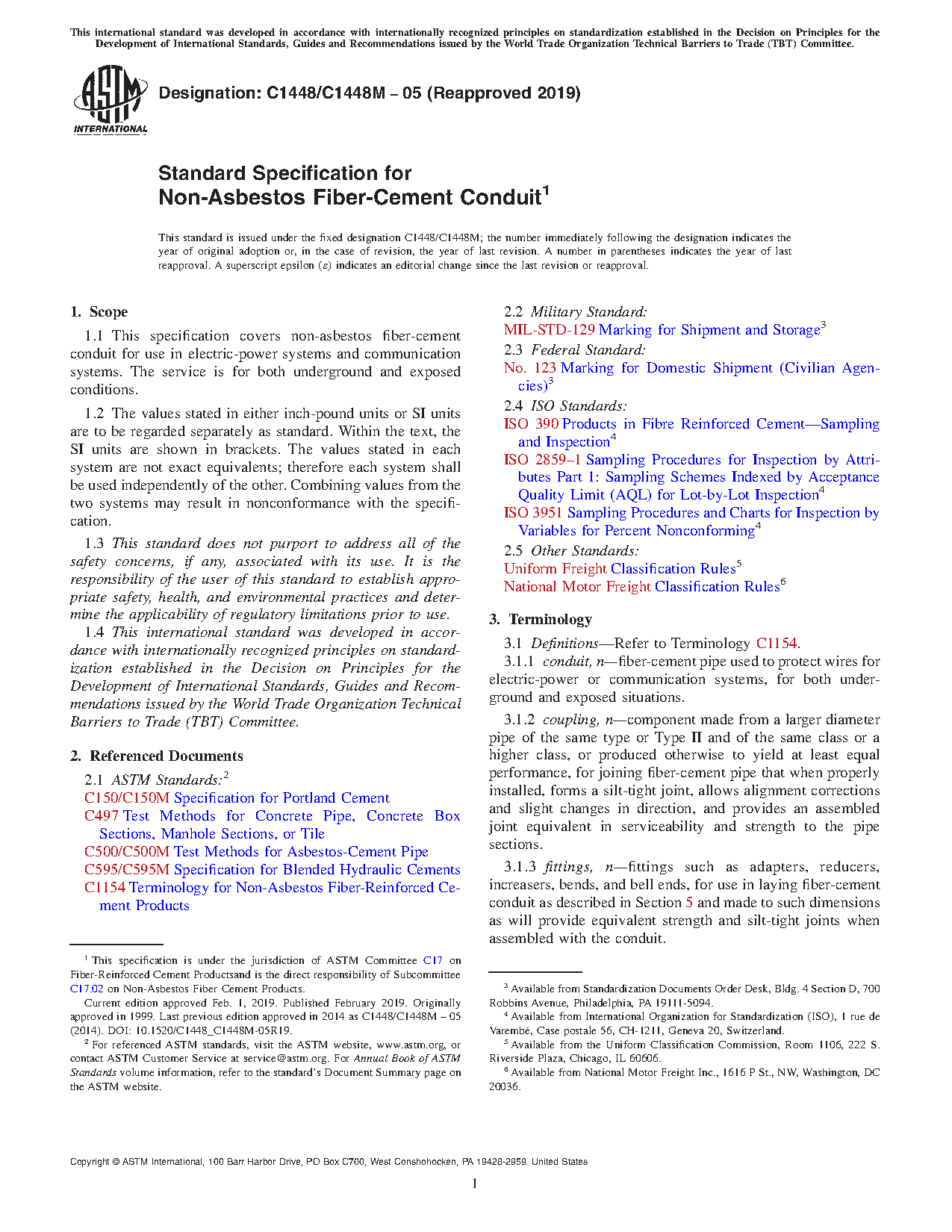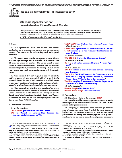 1.1 This specification covers non-asbestos fiber-cement conduit for use in electric-power systems and communication systems. The service is for both underground and exposed conditions.