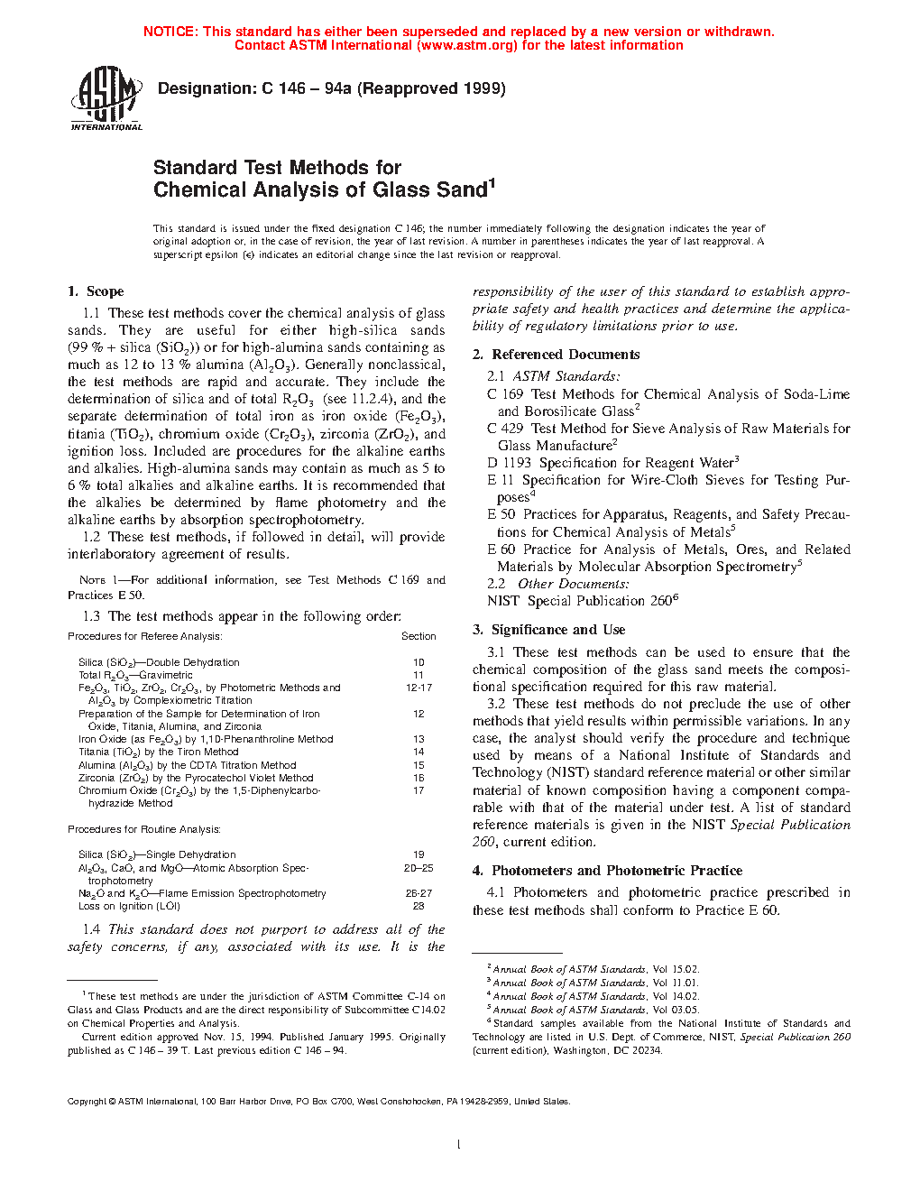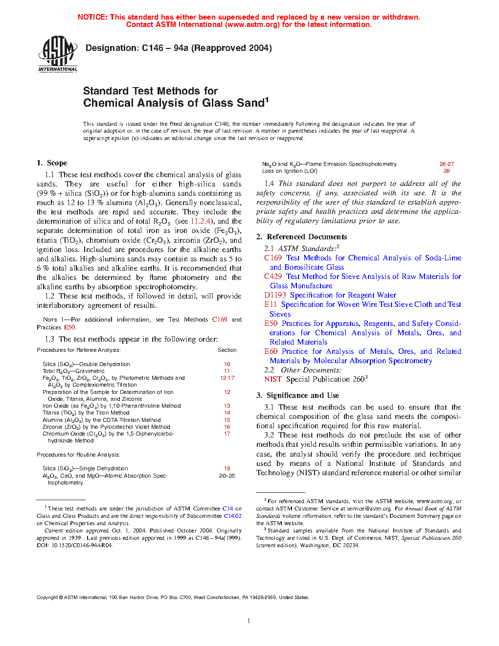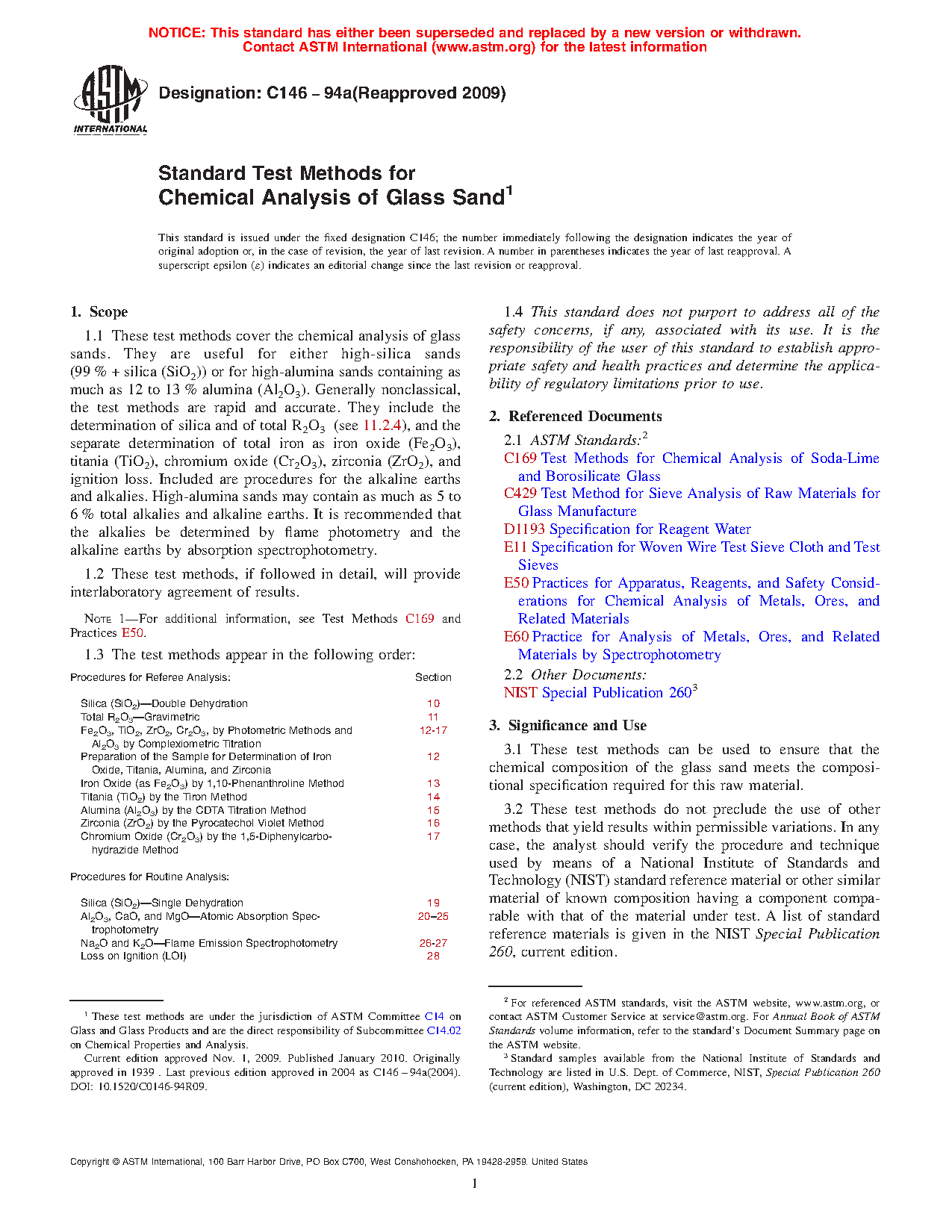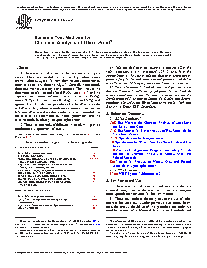 3.1 These test methods can be used to ensure that the chemical composition of the glass sand meets the compositional specification required for this raw material.