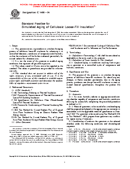1.1 This practice covers a procedure to simulate the aging process of loose-fill insulation by subjecting it to controlled laboratory conditions of temperature and humidity so that the insulation can be further evaluated in a state that simulates the aging process.