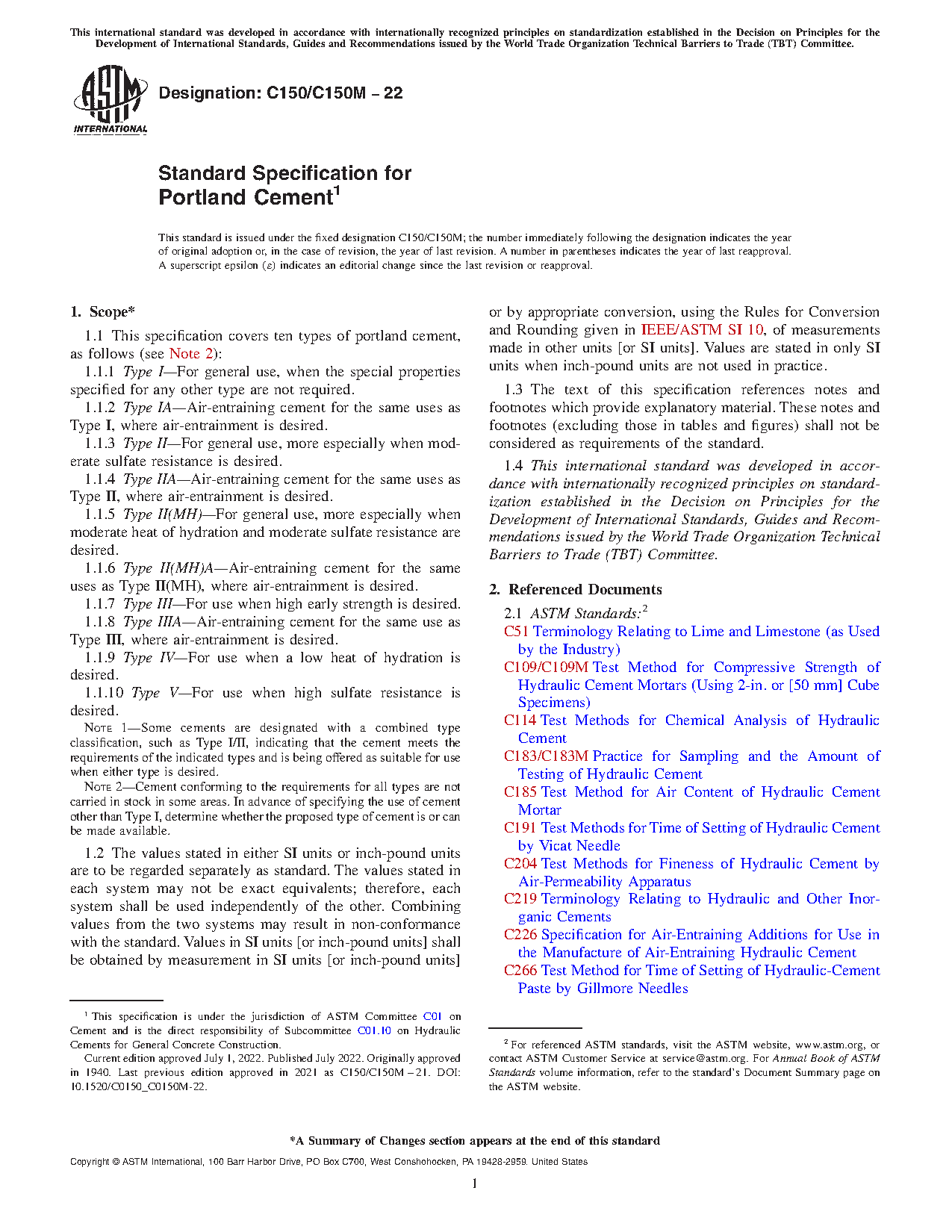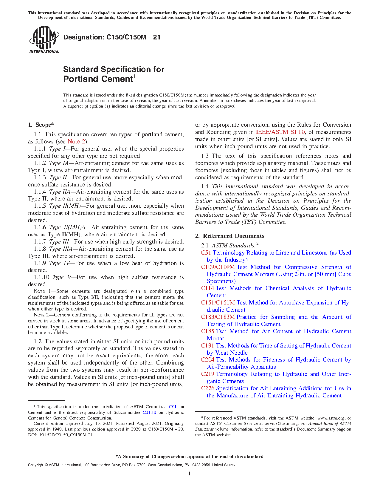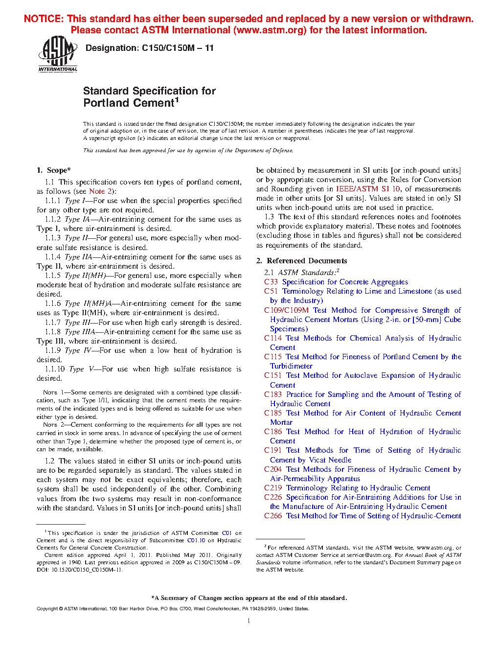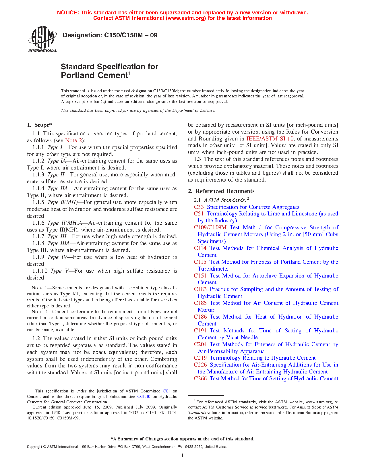 1.1 This specification covers ten types of portland cement, as follows (see Note 2):