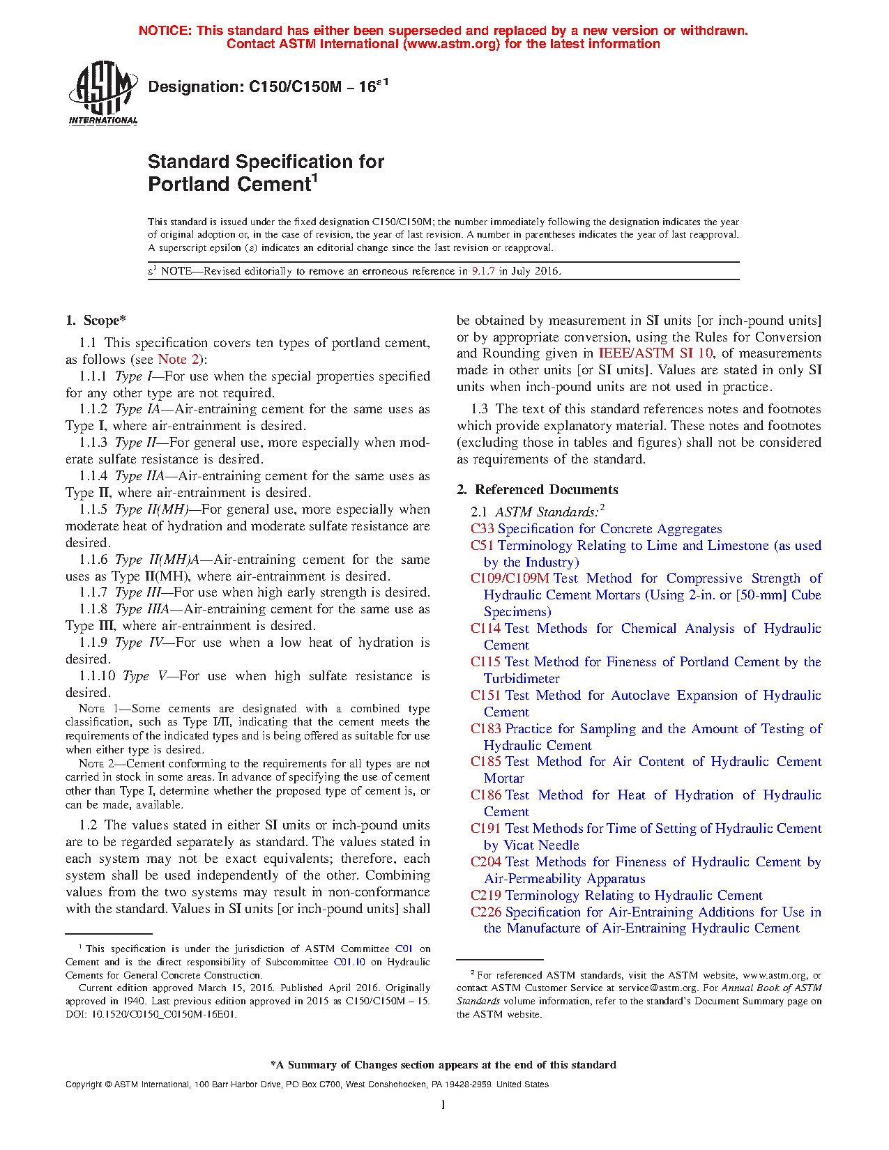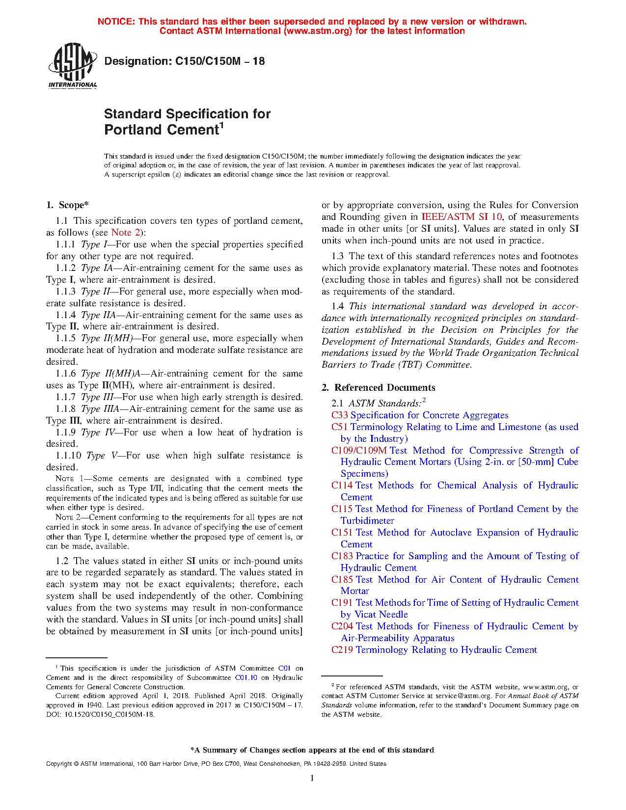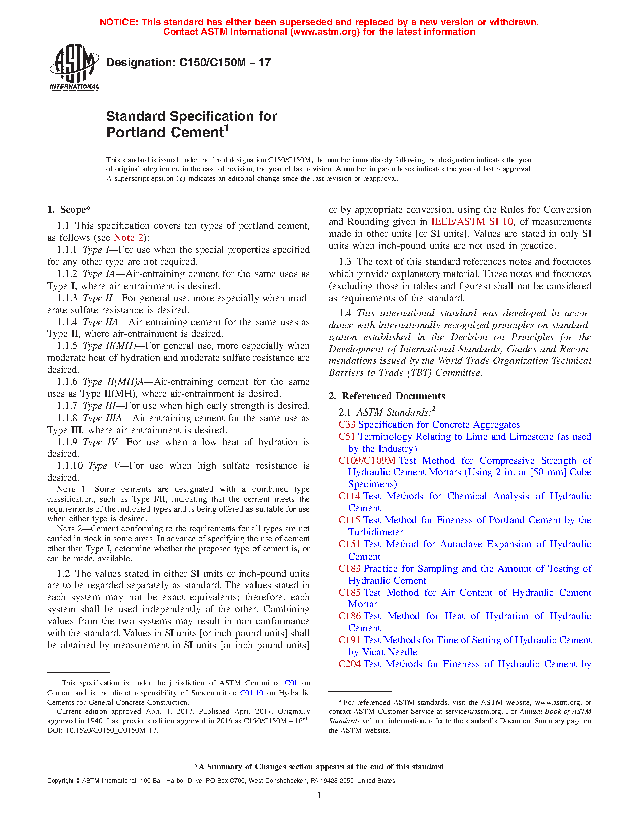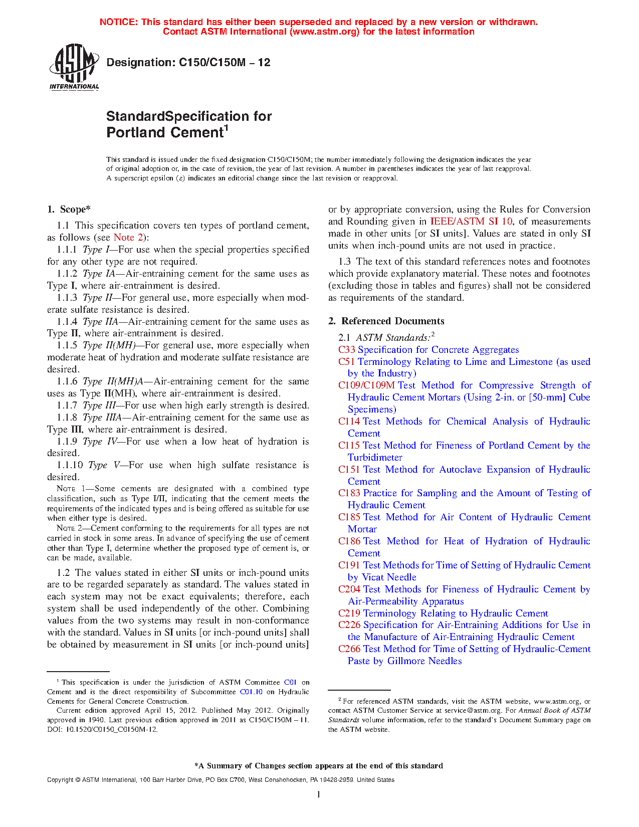 1.1 This specification covers ten types of portland cement, as follows (see Note 2):