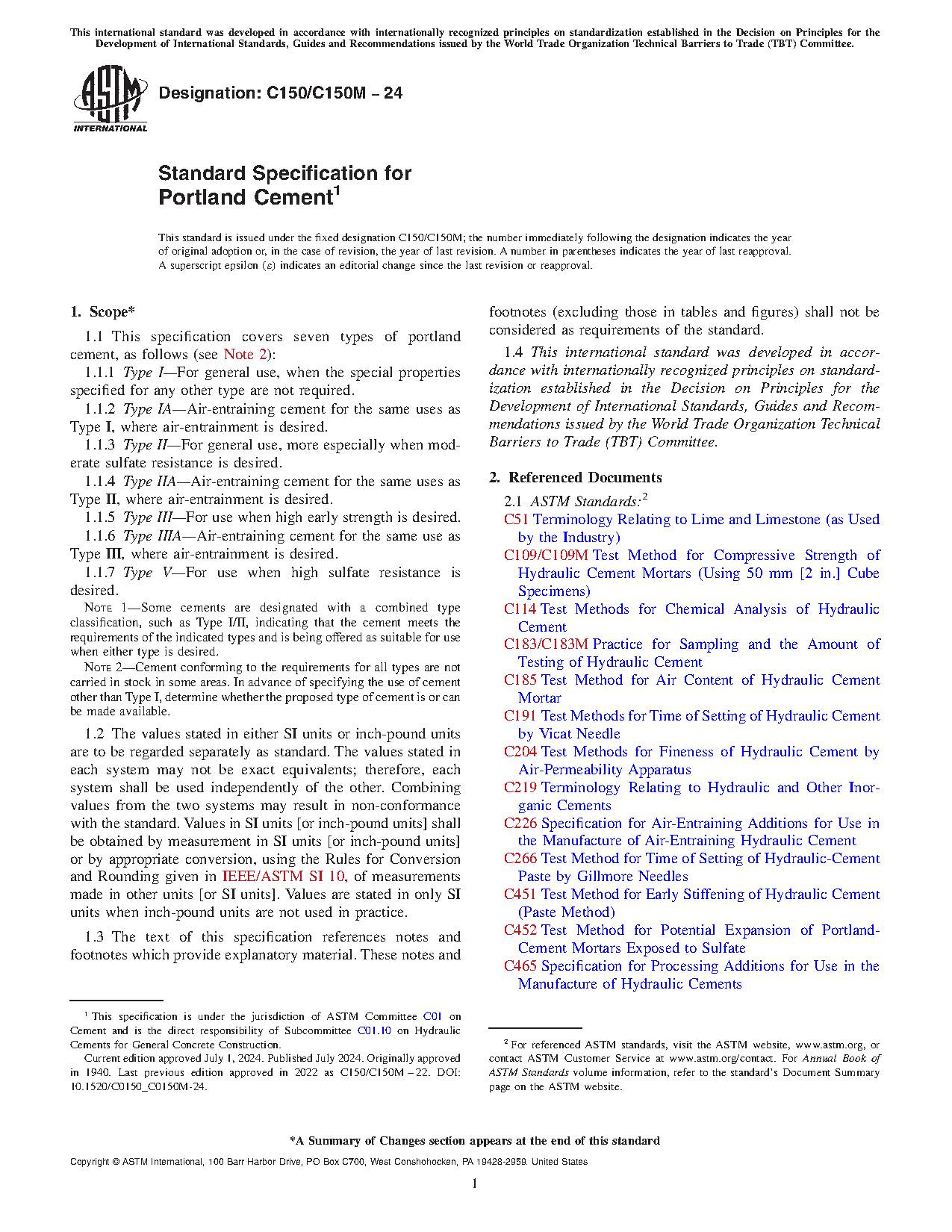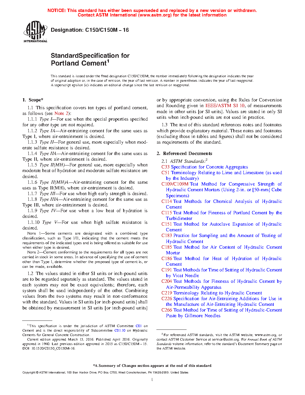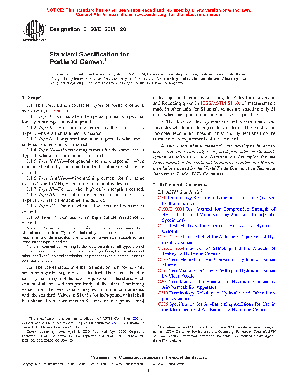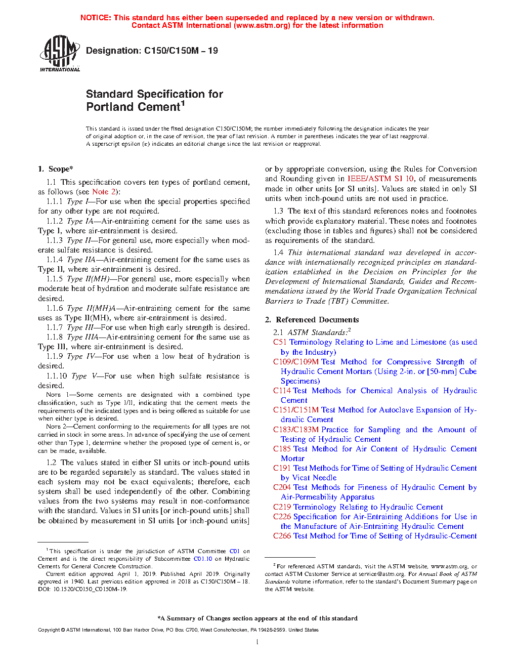 1.1 This specification covers ten types of portland cement, as follows (see Note 2):