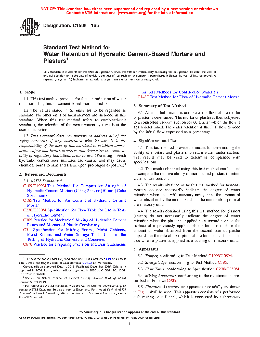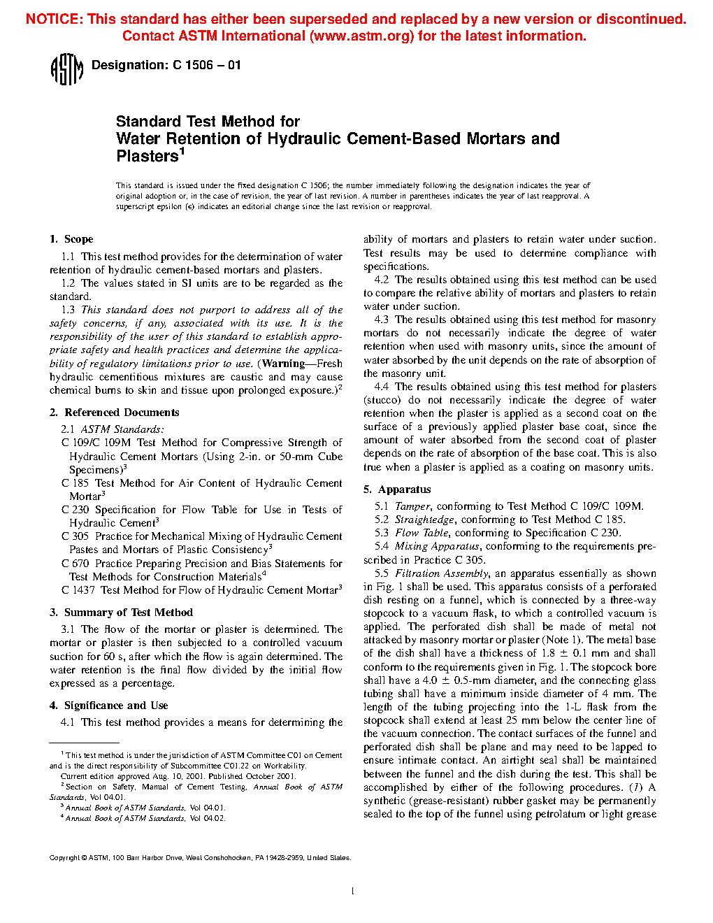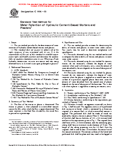 4.1 This test method provides a means for determining the ability of mortars and plasters to retain water under suction. Test results may be used to determine compliance with specifications.