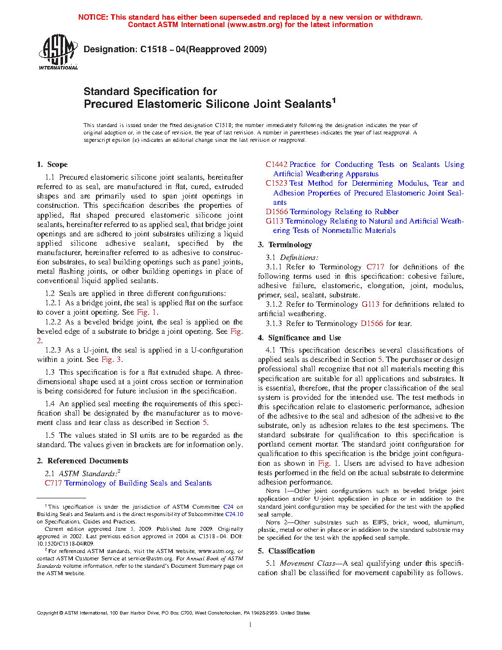 1.4 An applied seal meeting the requirements of this specification shall be designated by the manufacturer as to movement class and tear class as described in Section 5.