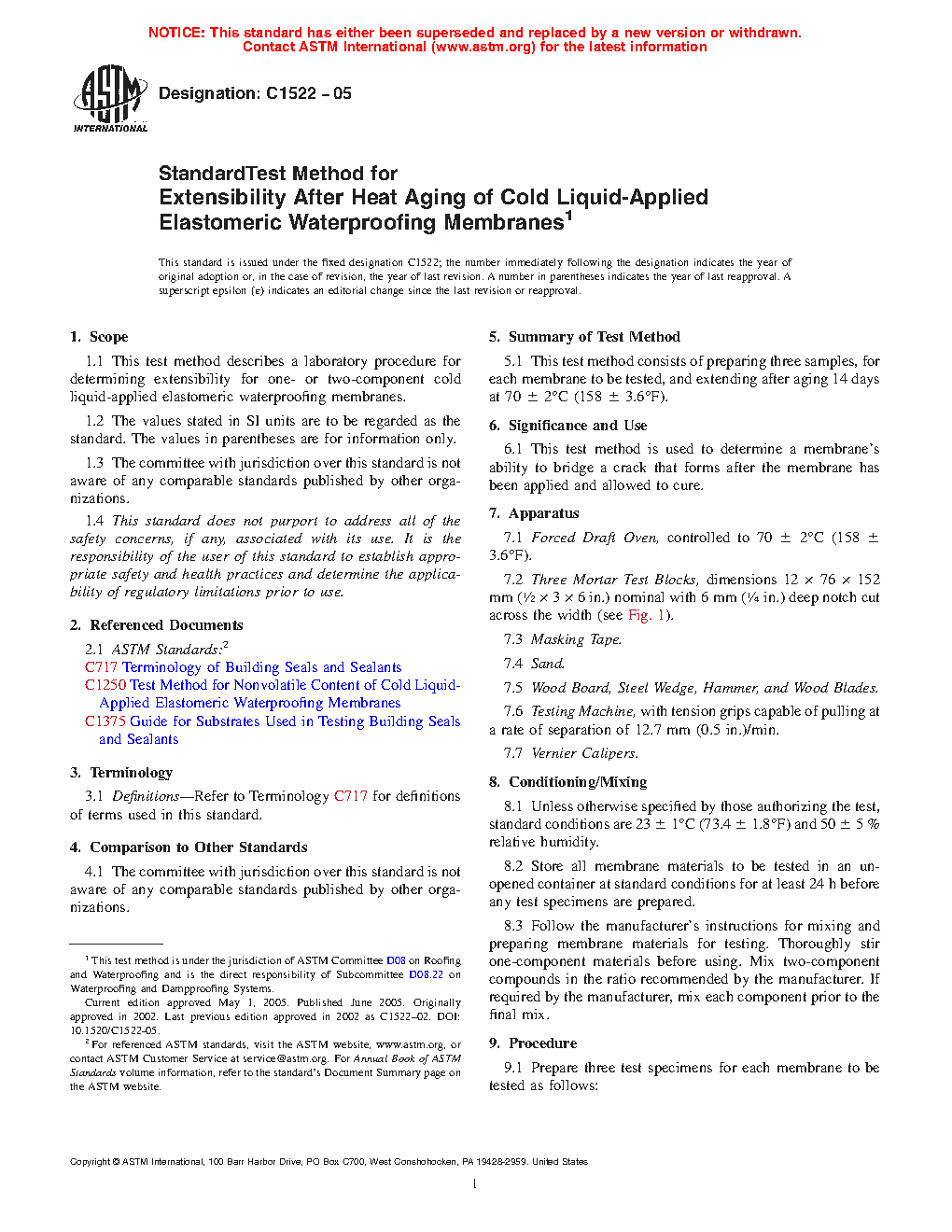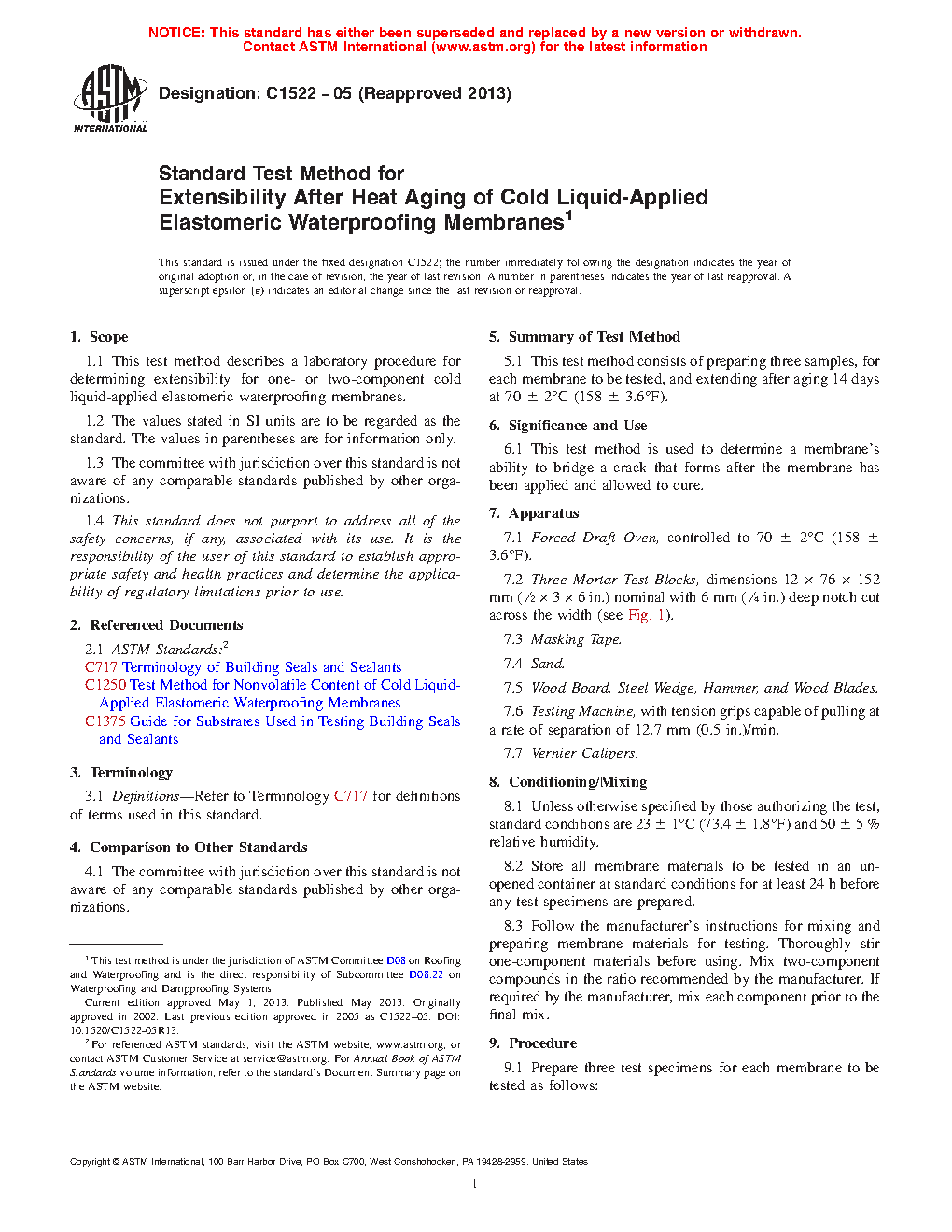 Standard Test Method for Extensibility After Heat Aging of Cold Liquid-Applied Elastomeric Waterproofing Membranes