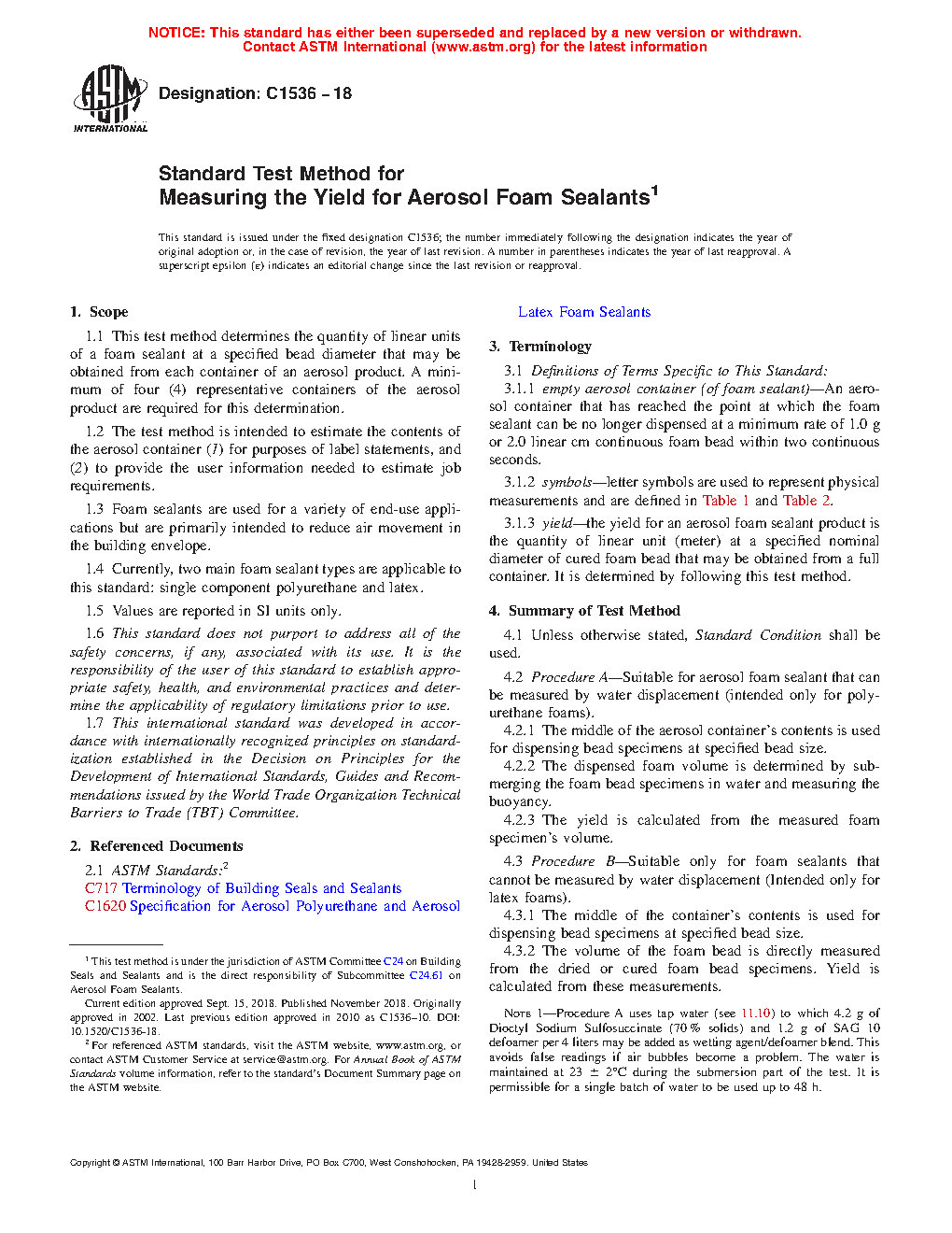 1.4 Currently, two main foam sealant types are applicable to this standard: single component polyurethane and latex.