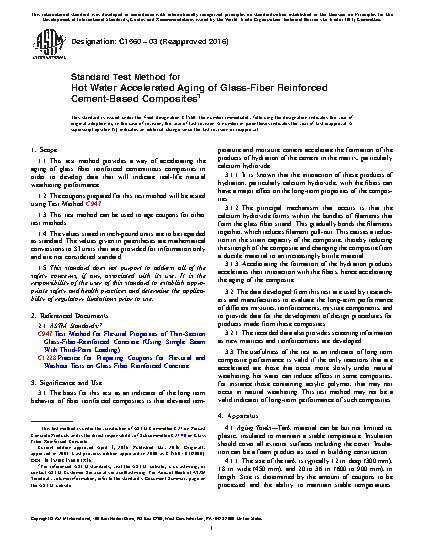 3.1 The basis for this test as an indicator of the long term behavior of fiber reinforced composites is that elevated temperature and moisture content accelerate the formation of the products of hydration of the cement in the matrix, particularly calcium hydroxide.