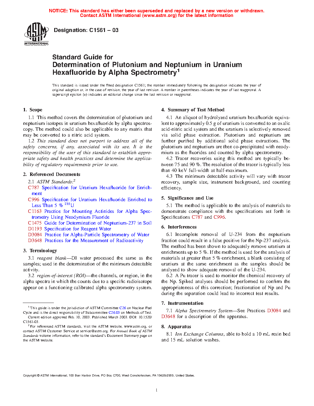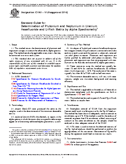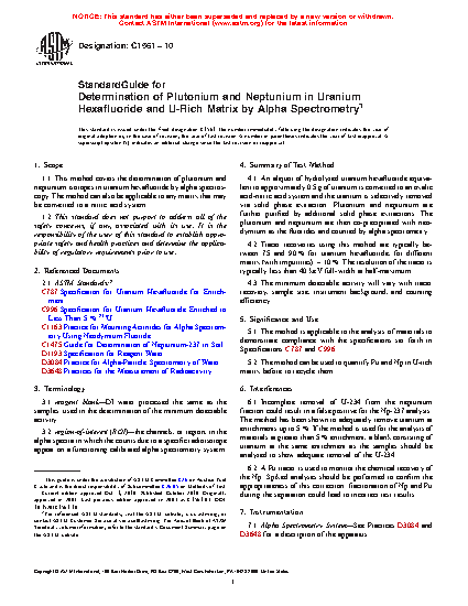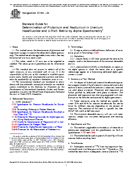 Standard Guide for Determination of Plutonium and Neptunium in Uranium Hexafluoride and U-Rich Matrix by Alpha Spectrometry