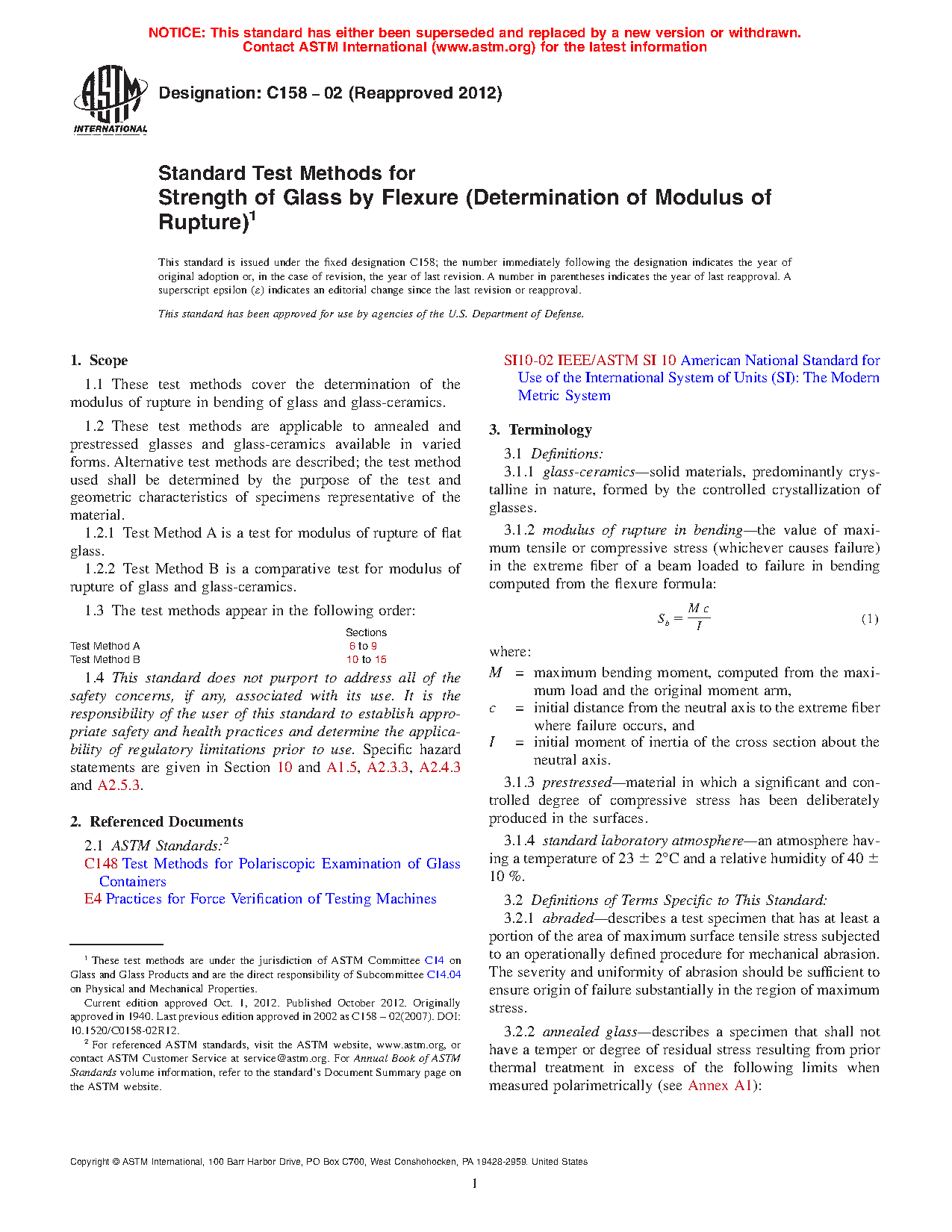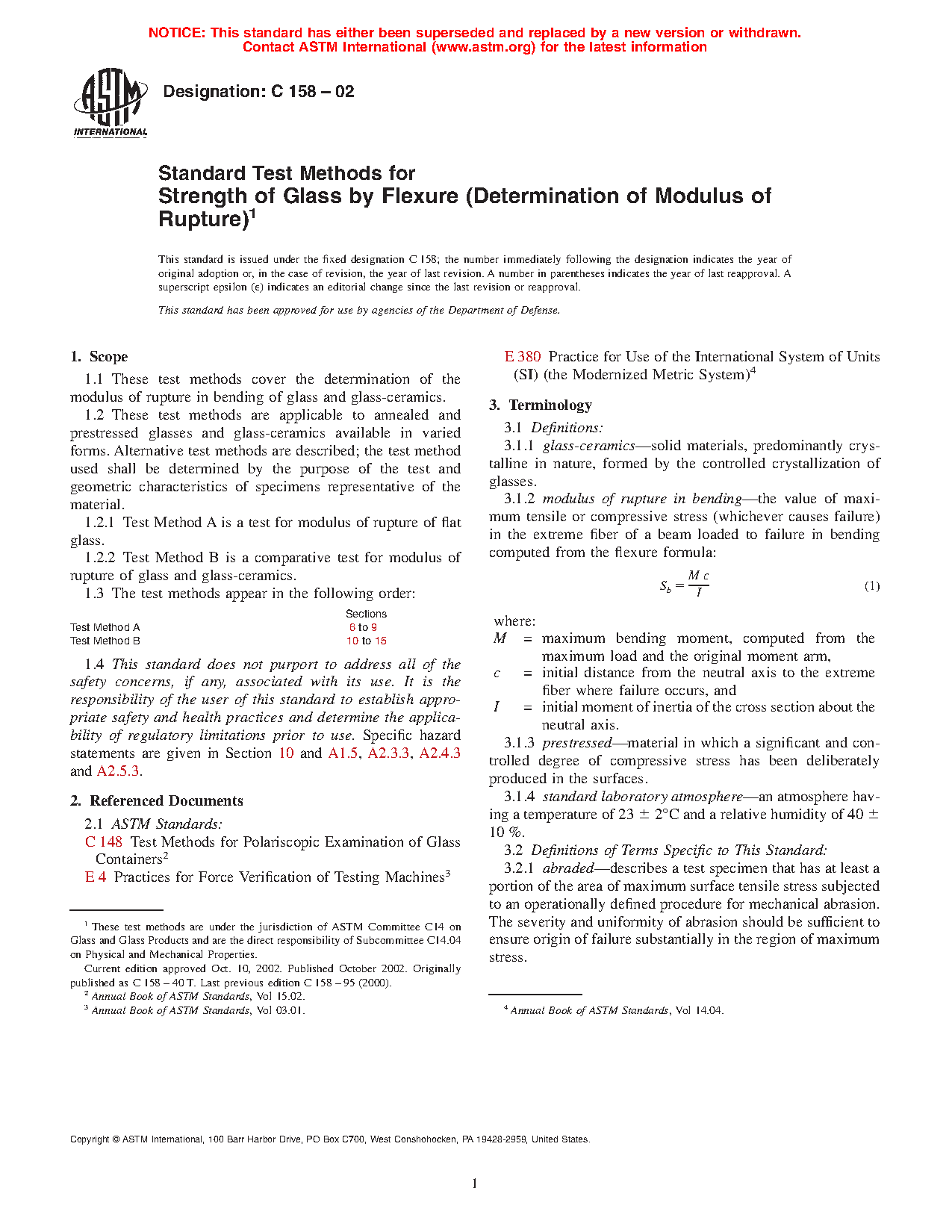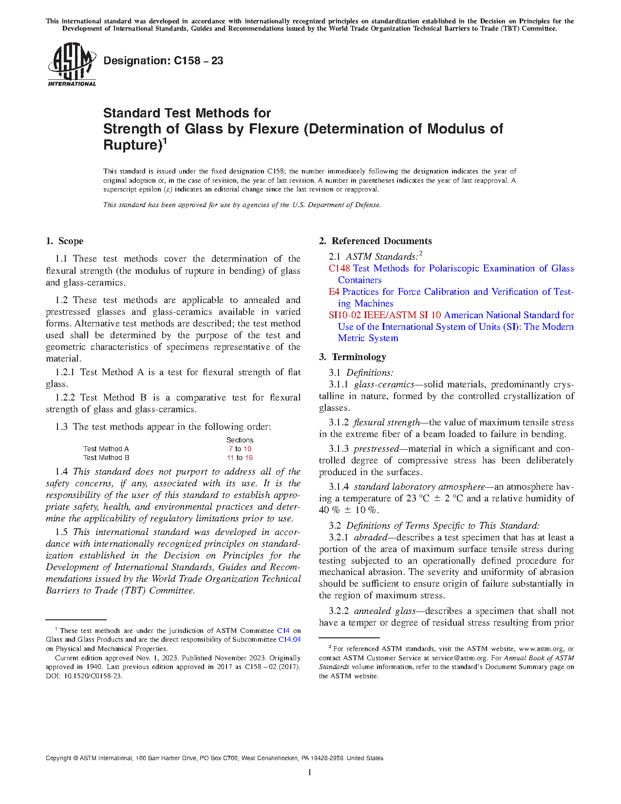 1.2 These test methods are applicable to annealed and prestressed glasses and glass-ceramics available in varied forms. Alternative test methods are described; the test method used shall be determined by the purpose of the test and geometric characteristics of specimens representative of the material.