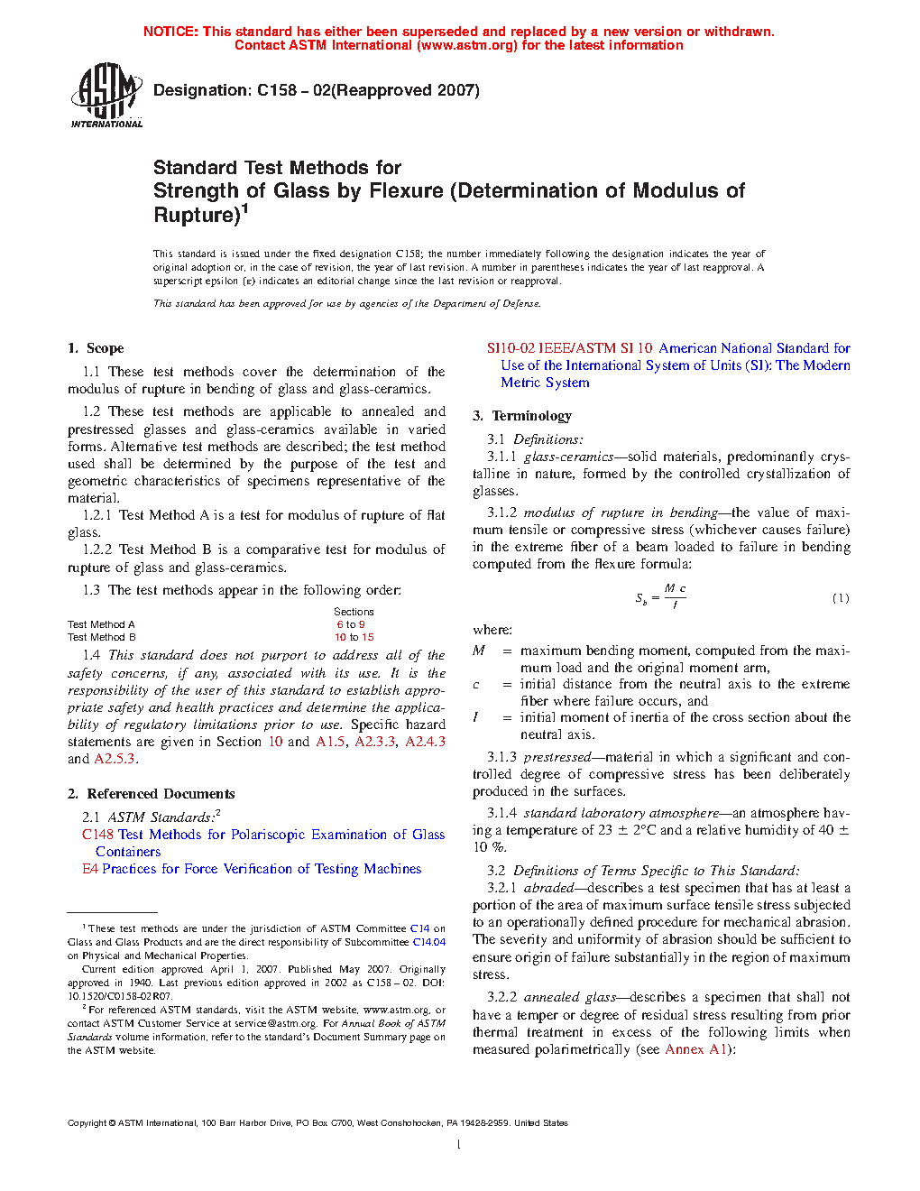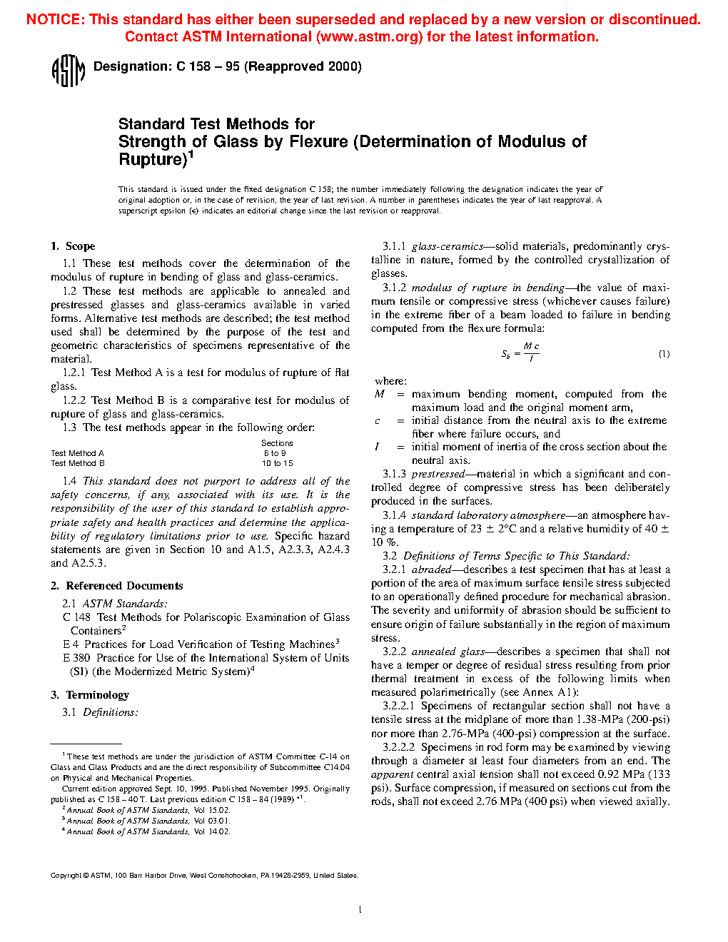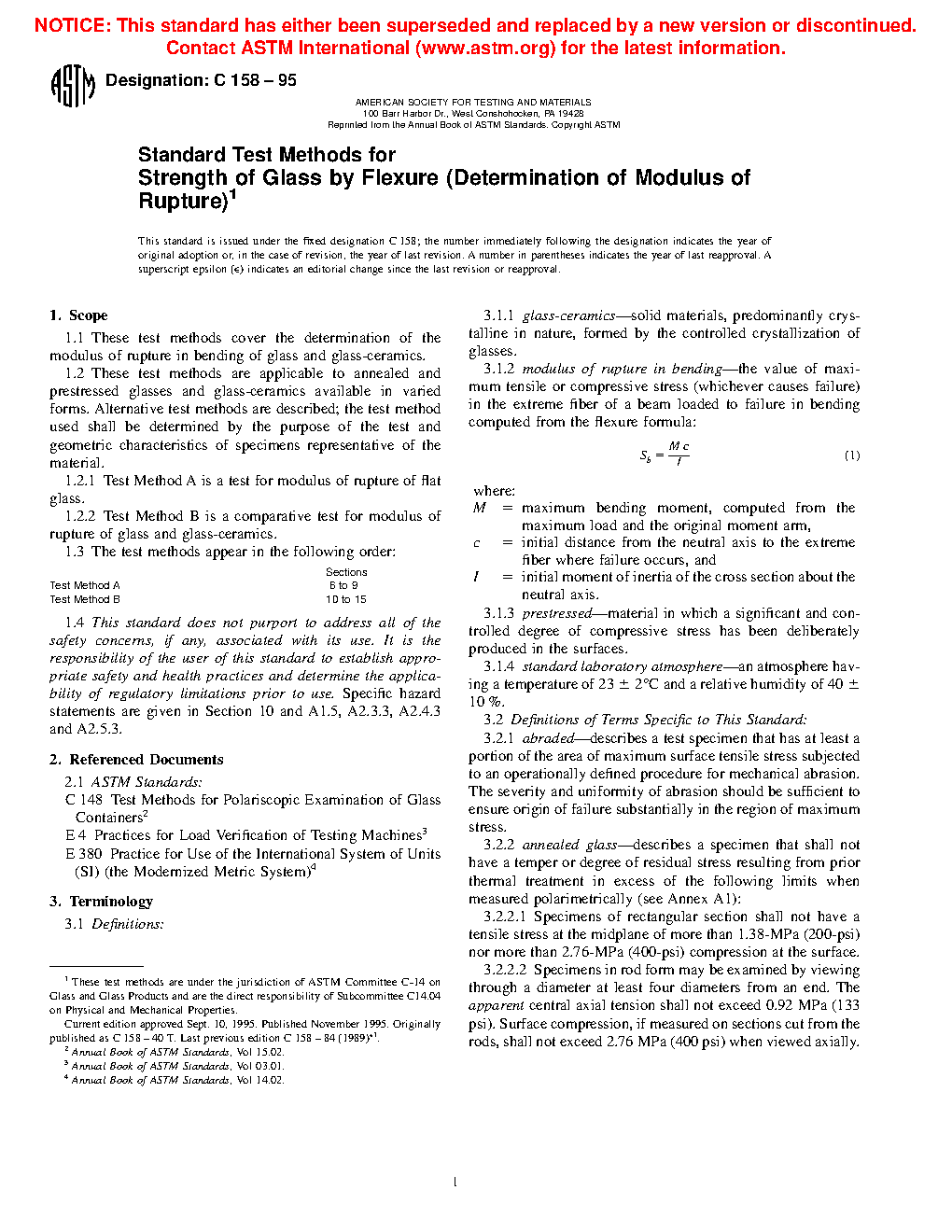 1.2 These test methods are applicable to annealed and prestressed glasses and glass-ceramics available in varied forms. Alternative test methods are described; the test method used shall be determined by the purpose of the test and geometric characteristics of specimens representative of the material.
