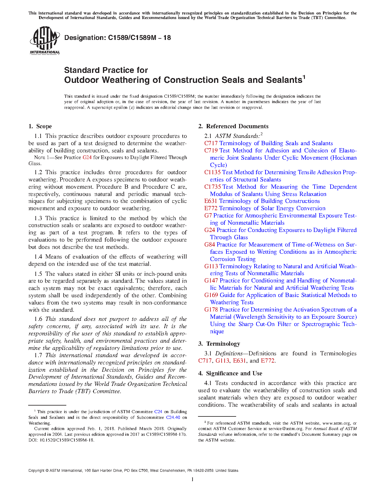 1.7 This international standard was developed in accordance with internationally recognized principles on standardization established in the Decision on Principles for the Development of International Standards, Guides and Recommendations issued by the World Trade Organization Technical Barriers to Trade (TBT) Committee.
