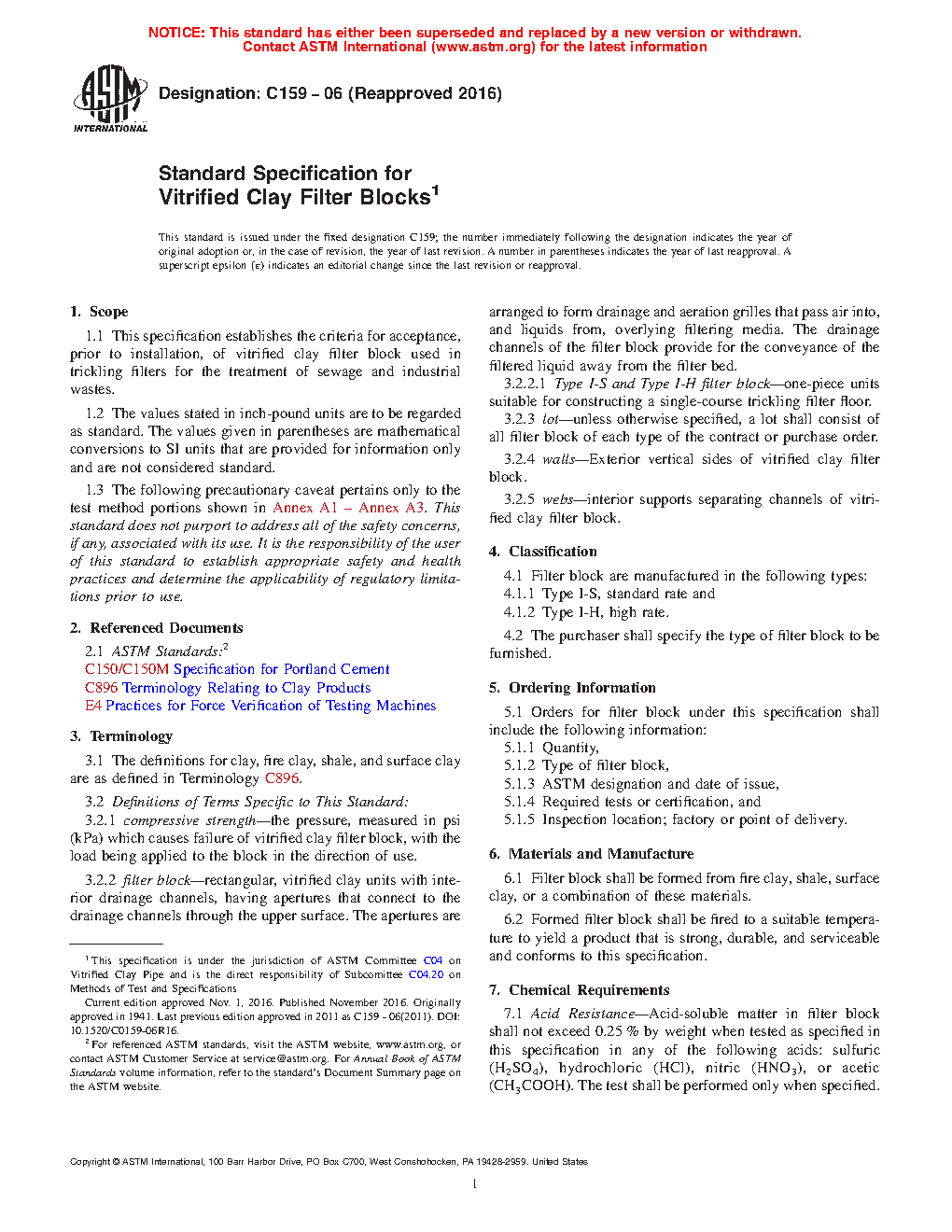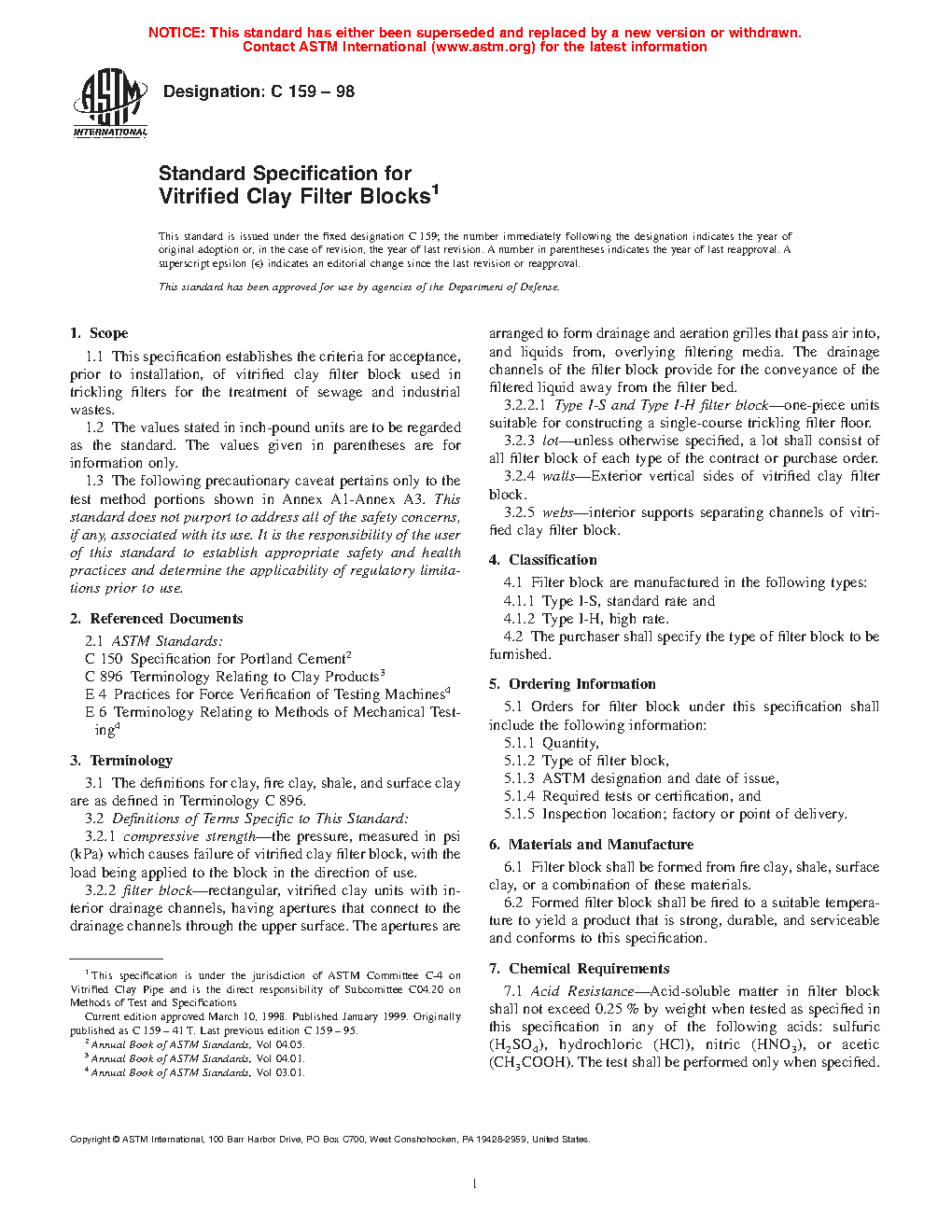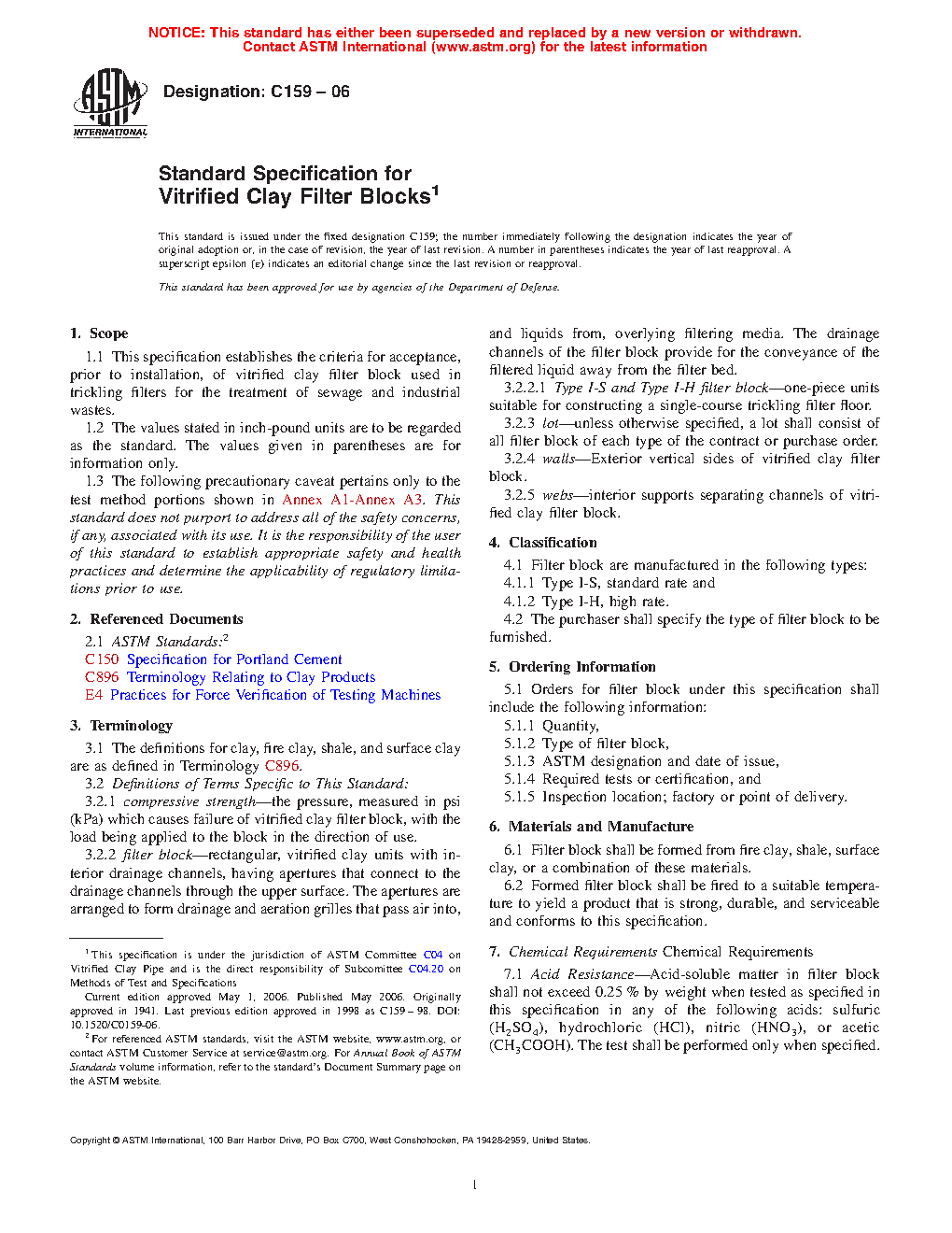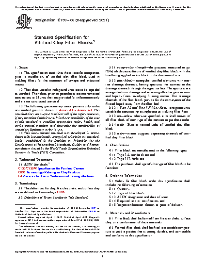 1.1 This specification establishes the criteria for acceptance, prior to installation, of vitrified clay filter block used in trickling filters for the treatment of sewage and industrial wastes.