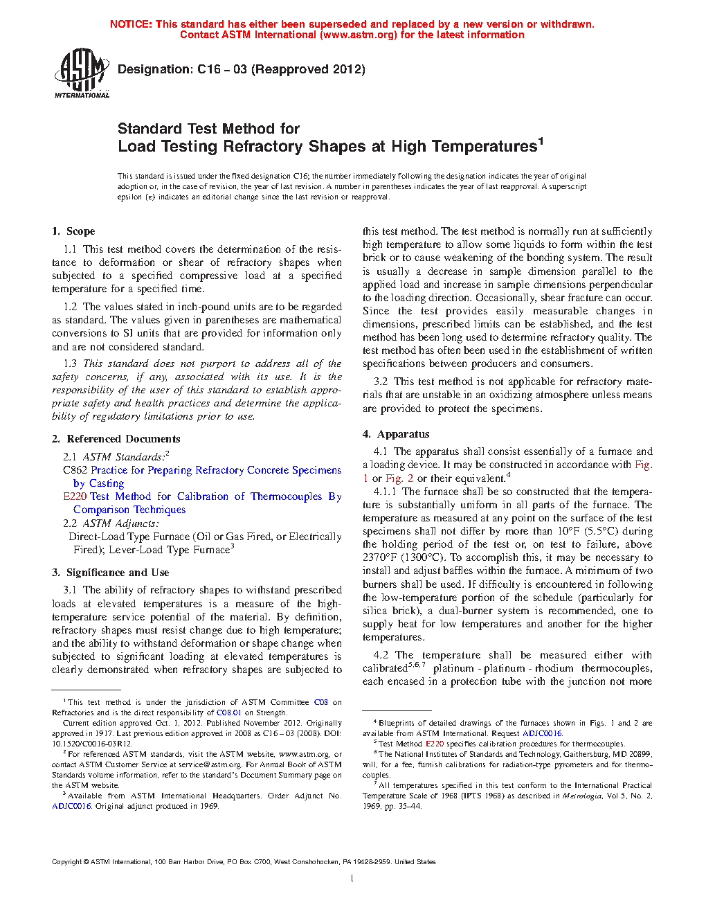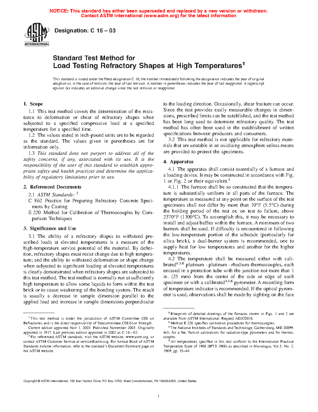 1.1 This test method covers the determination of the resistance to deformation or shear of refractory shapes when subjected to a specified compressive load at a specified temperature for a specified time.