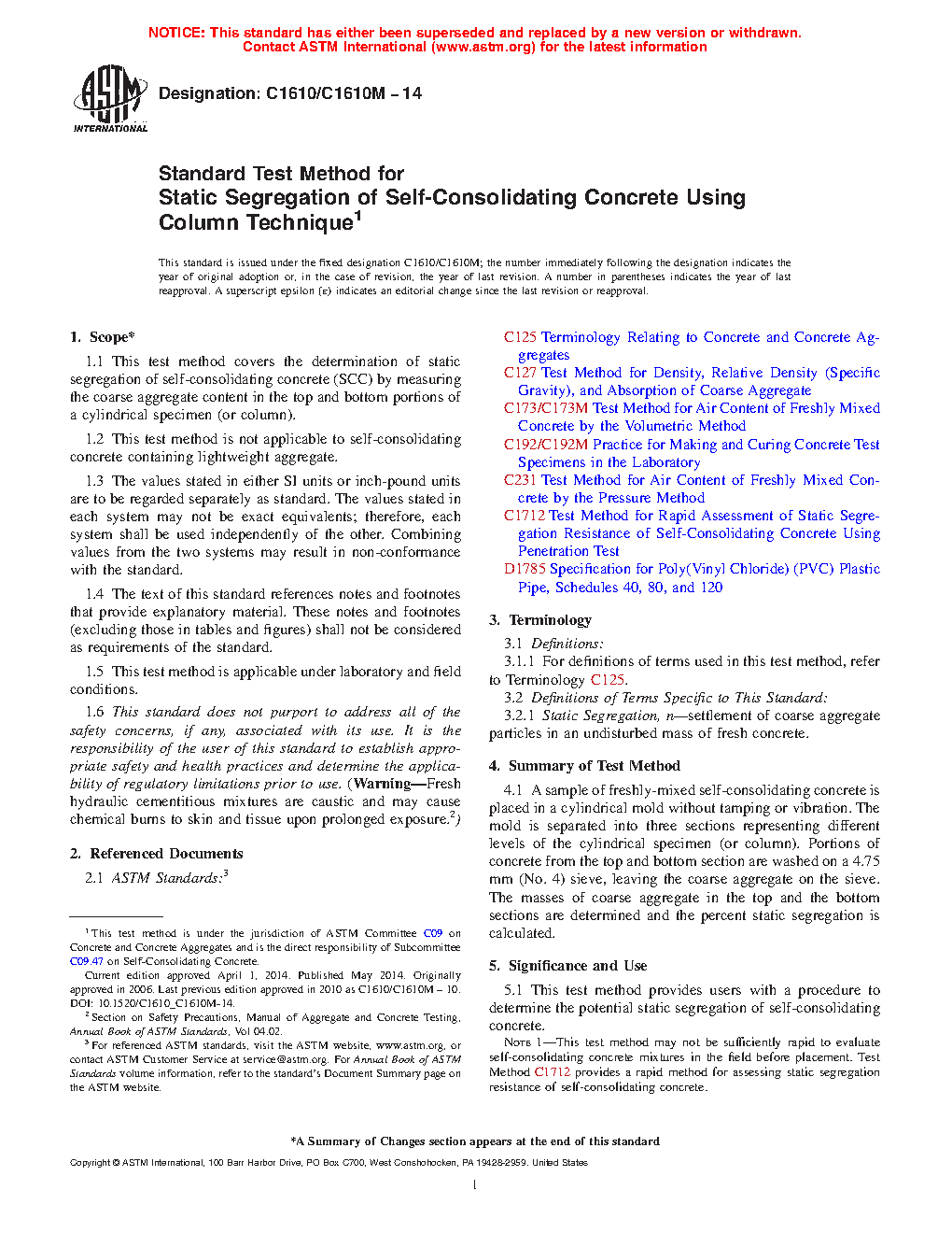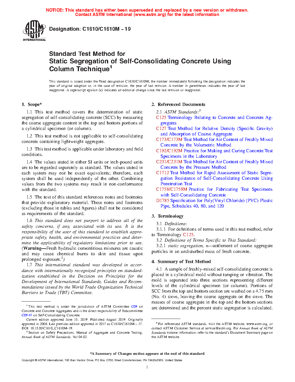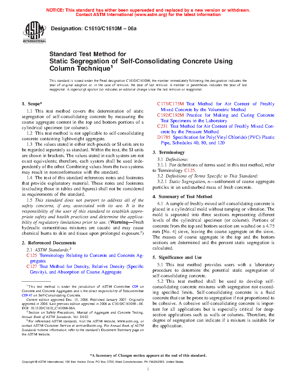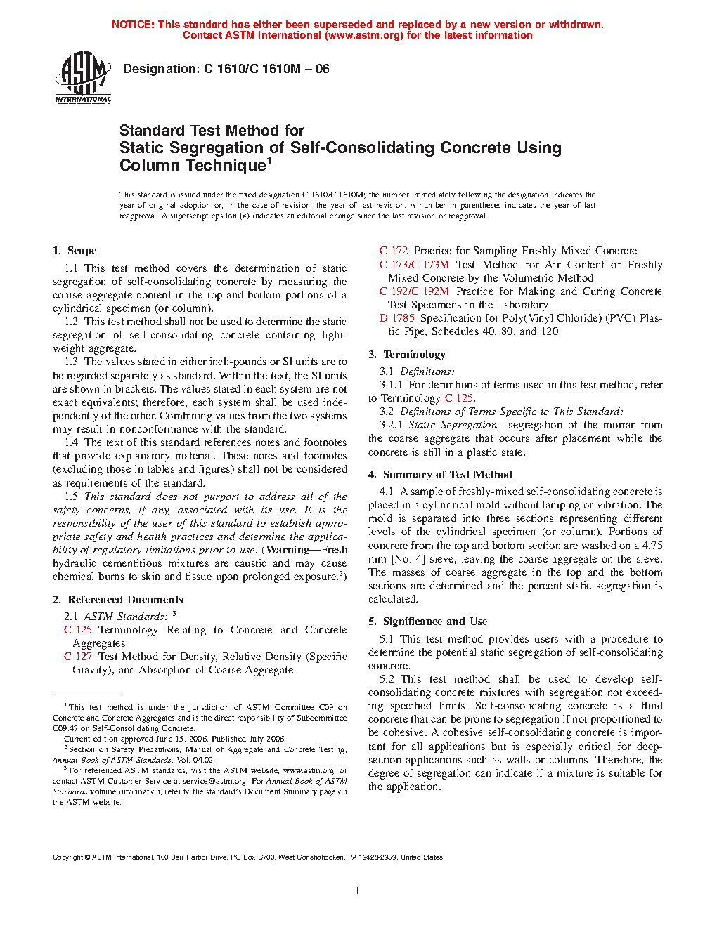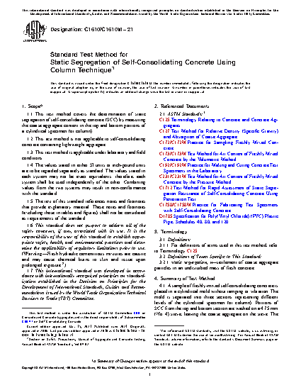 5.1 This test method provides users with a procedure to determine the potential static segregation of self-consolidating concrete.