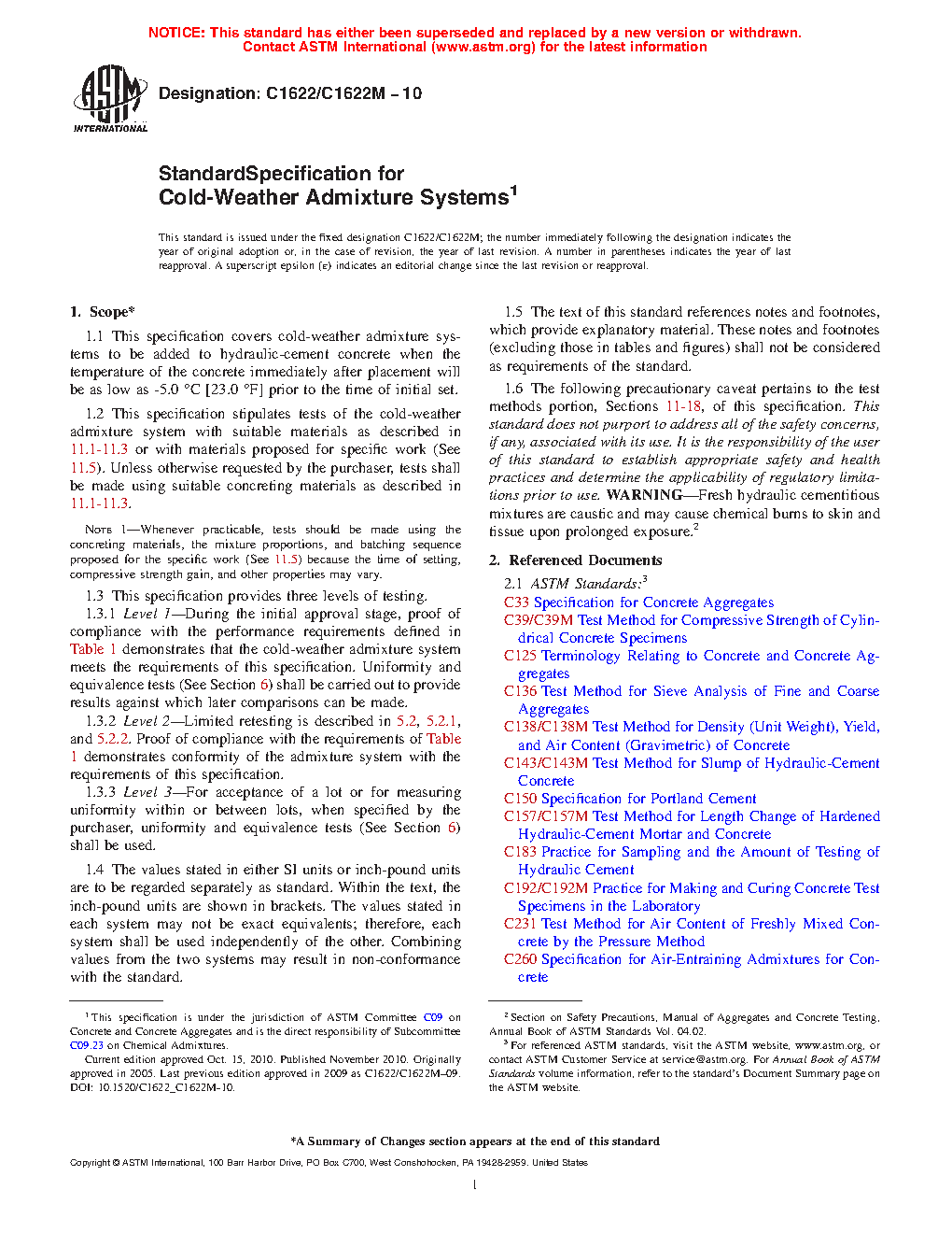 1.2 This specification stipulates tests of the cold-weather admixture system with suitable materials as described in 11.1 – 11.3 or with materials proposed for specific work (See 11.5). Unless otherwise requested by the purchaser, tests shall be made using suitable concreting materials as described in 11.1 – 11.3.