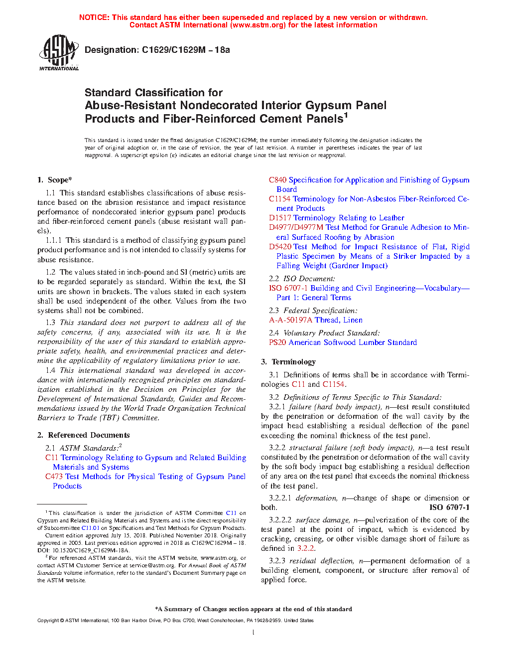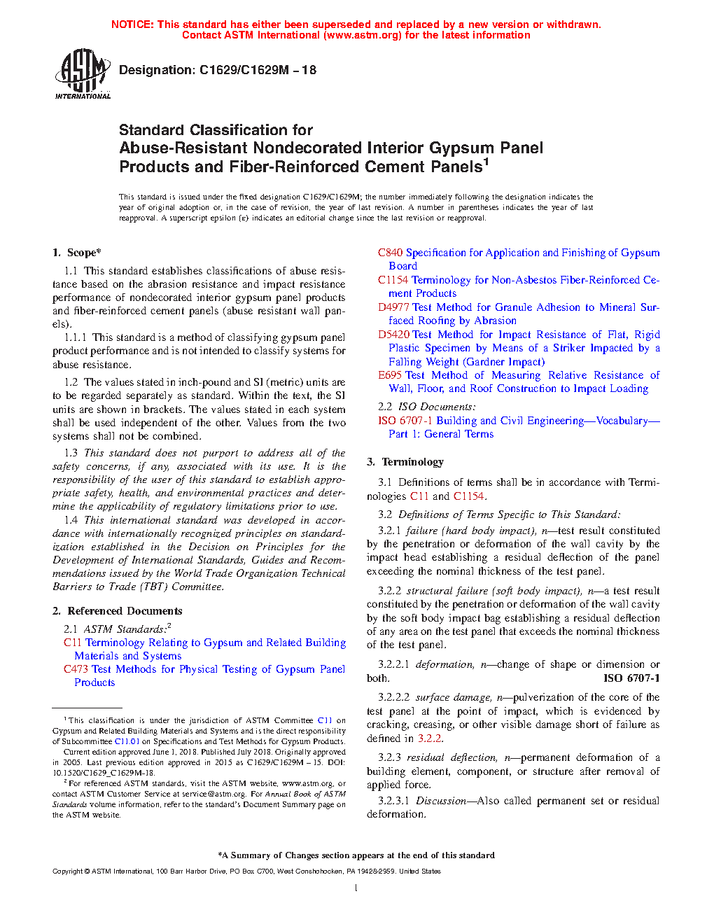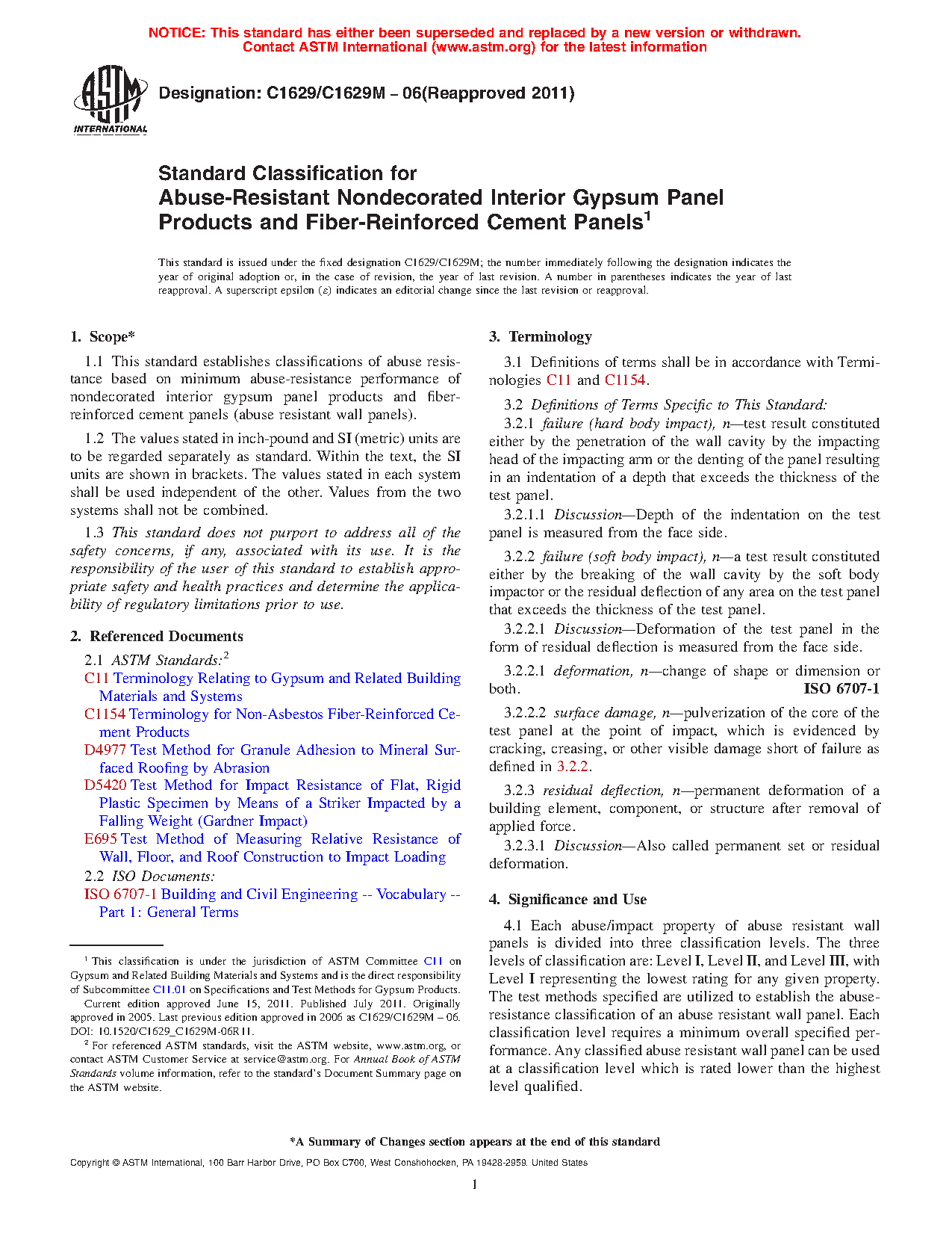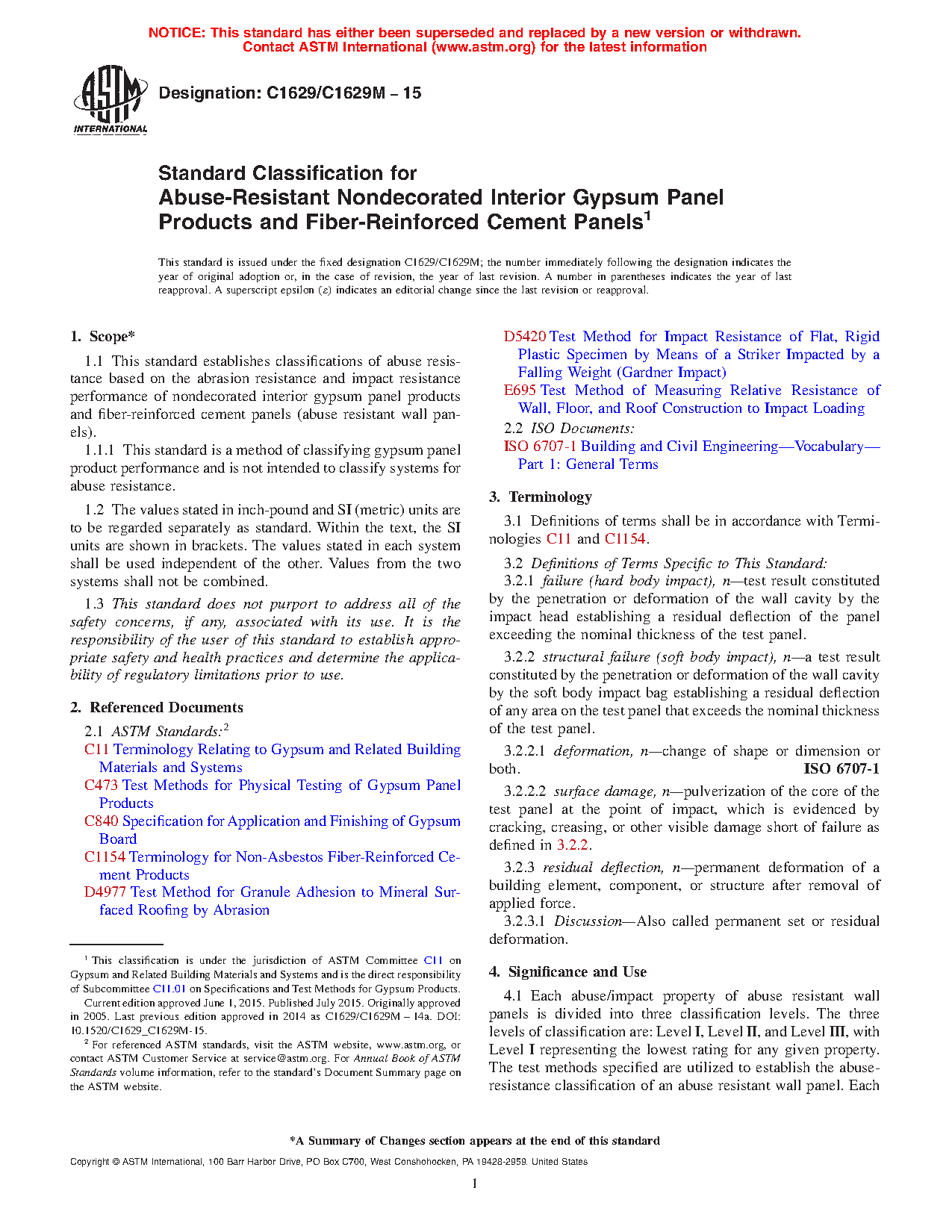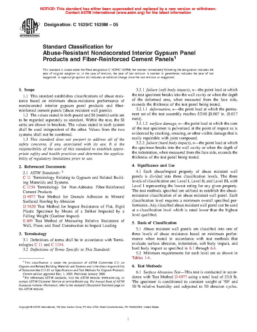 1.1.1 This standard is a method of classifying gypsum panel product performance and is not intended to classify systems for abuse resistance.