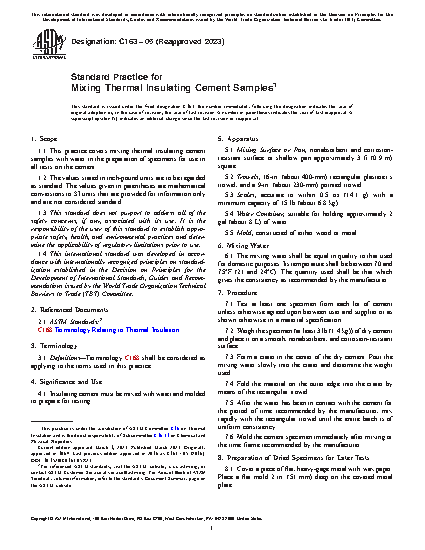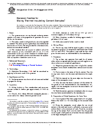 1.1 This practice covers mixing thermal insulating cement samples with water in the preparation of specimens for use in all tests on the cement.