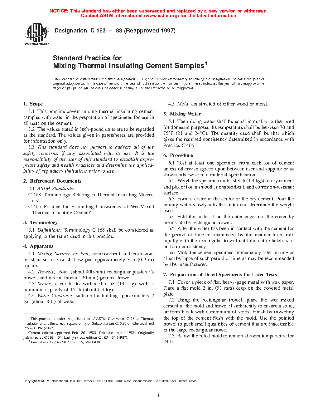 ASTM C163-88(1997)