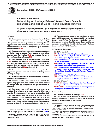 1.6 There are no other known practices or test methods that specify the preparation of the assemblies used to determine the air leakage rate of gap filling sealants, dry preformed foams or insulations.