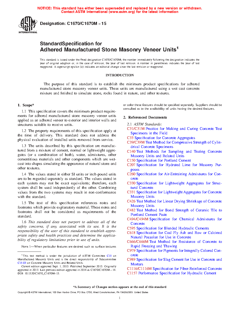1.1 This specification covers the minimum product requirements for adhered manufactured stone masonry veneer units applied as an adhered veneer to exterior and interior walls and structures suitable to receive units.